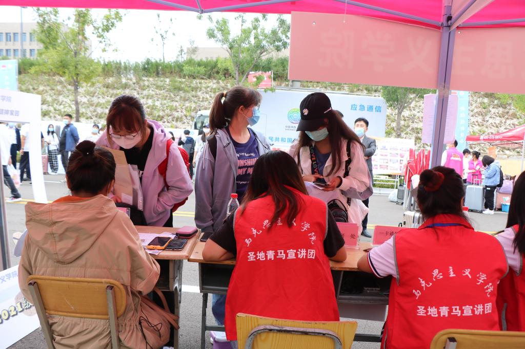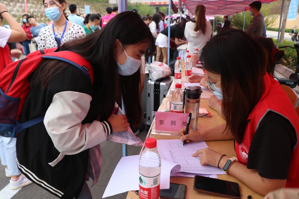 组成由党委副书记赵海龙老师带队,辅导员闫莉莉负责,学生自发加入的志愿服务队帮助和引导2021级新生完成入学报到。
