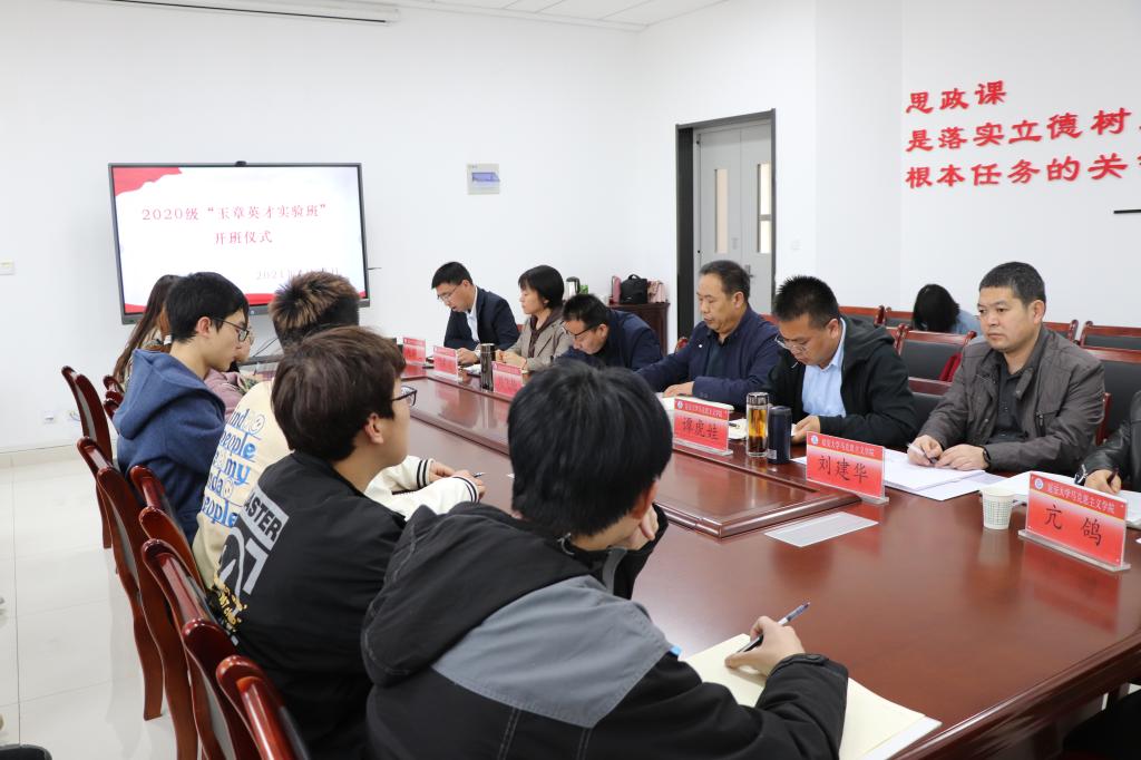 在学院三楼会议室举行了第二届级玉章英才实验班开班仪式。参加本次开班仪式的有学院党委常务副书记兼行政副院长张彬老师、院长兼党委副书记谭虎娃老师、副院长刘飞轮老师、副院长刘建华老师、党委副书记赵海龙老师、教学秘书亢鸽老师、辅导员闫莉莉老师及2020级玉章英才实验班全体同学。开班仪式由党委副书记赵海龙老师主持。