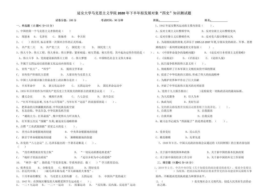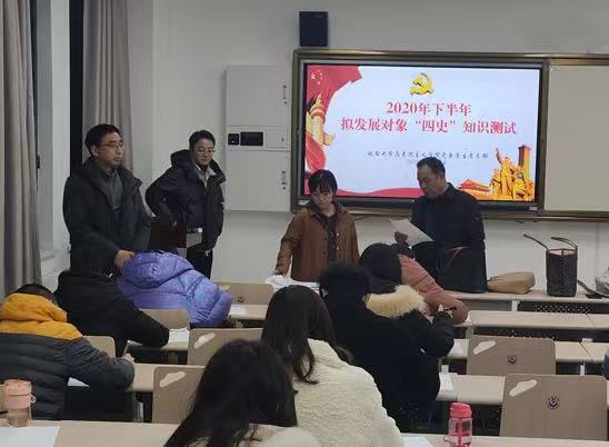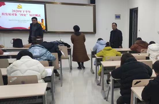 学生党支部于学院202教室组织进行2020年下半年拟发展对象“四史”知识测试。