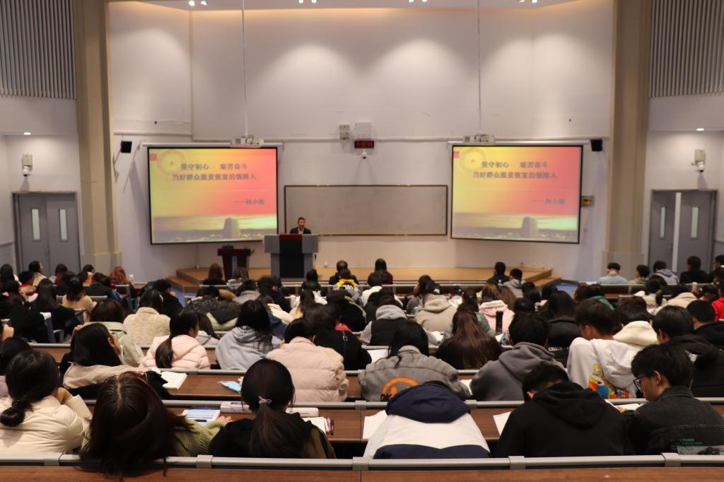 柯小海书记围绕“坚守初心,艰苦奋斗,当好群众脱贫致富的领路人”这一主题,结合自身经历,从谋划产业,当好群众致富的“领头羊”;拓宽思路,把好集体发展的“方向盘”;规范管理,守好管事“安全线”;为民解忧,做好群众的“知心人”四个方面为同学们讲述了作为一名基层共产党员如何为人民群众办实事、带领广大人民群众发家致富,共创美好生活。