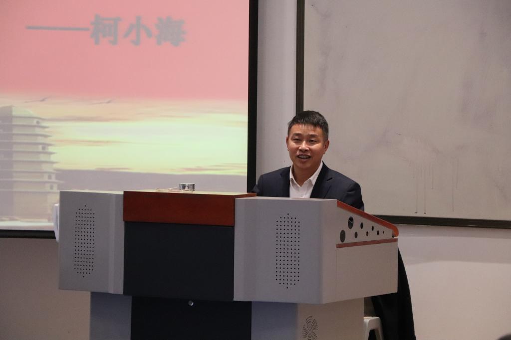 邀请,中共十九大代表、全国劳动模范、全国优秀共产党员、中国“最美奋斗者”、陕西省“三秦楷模”、延安市黄陵县双龙镇索洛湾村党支部书记柯小海,在新校区第二阶梯教室为学生讲授了一场特别的思政课。