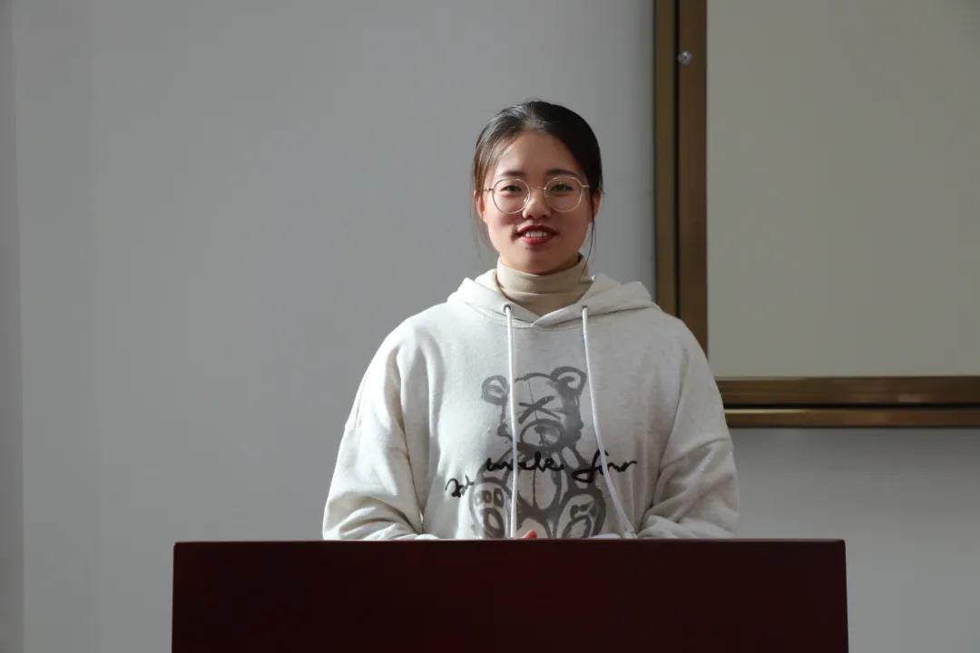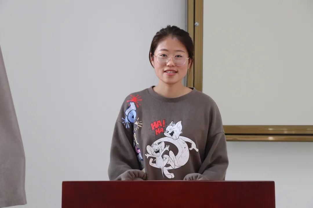 一,学院党委学生党支部副书记董阳介绍党支部及其成员取得的荣誉和成绩、支部委员会及其成员的职务设置和主要工作。