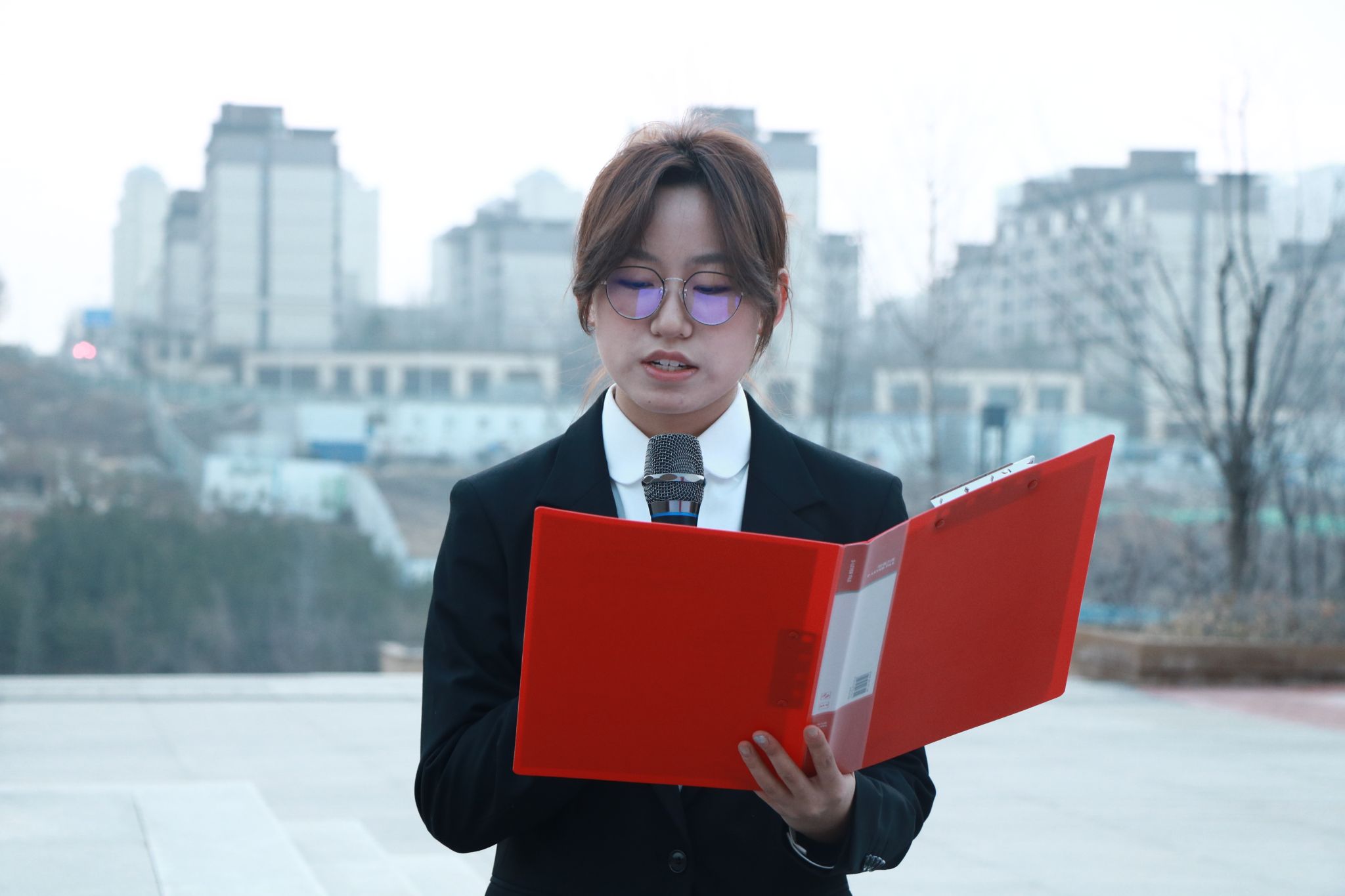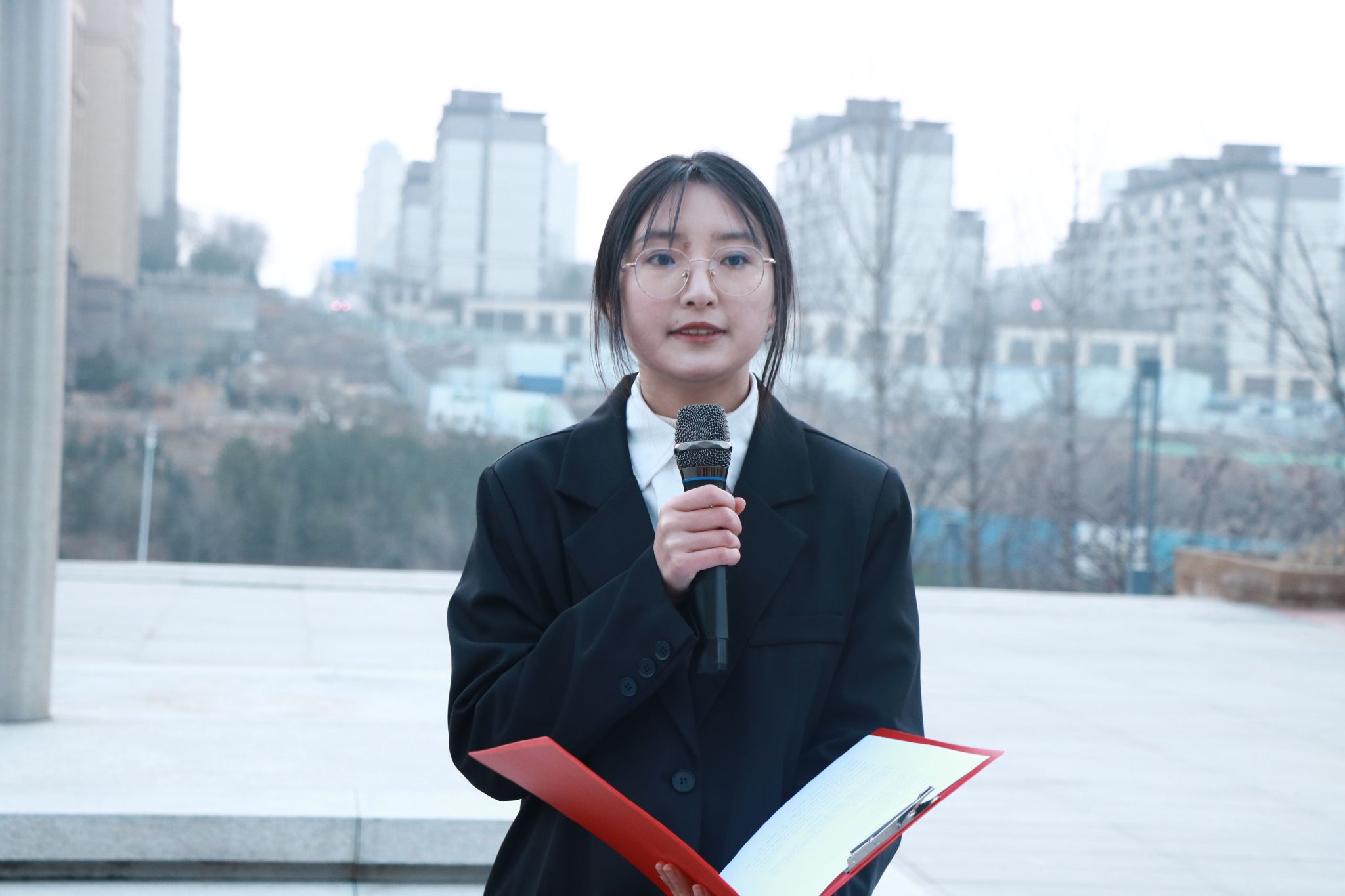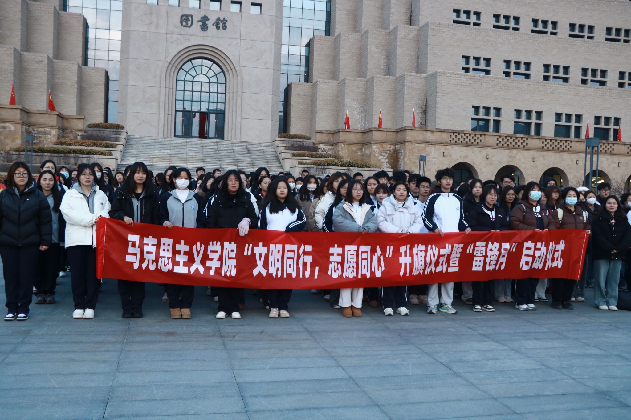 在新校区图书馆前广场举行“文明同行,志愿同心”升旗仪式暨“雷锋月”活动启动仪式。学工部教育管理科科长董超云老师、91热爆