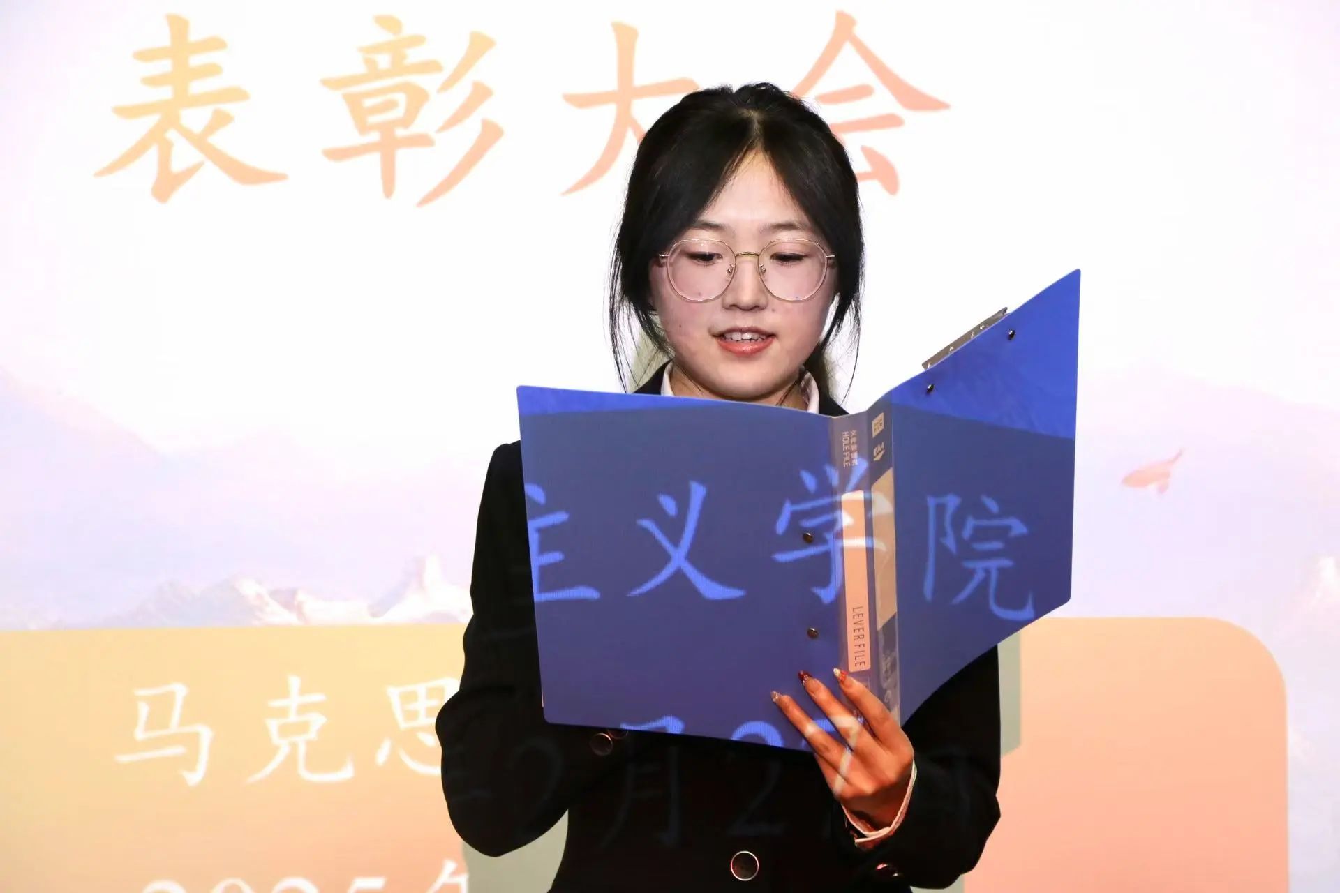 在一楼报告厅举办了2024级新生入学教育总结暨表彰大会。参加此次表彰大会的有学院党委副书记赵海龙、党委组织员苗玉园及24级全体学生。此次活动由尚晓宇同学主持。