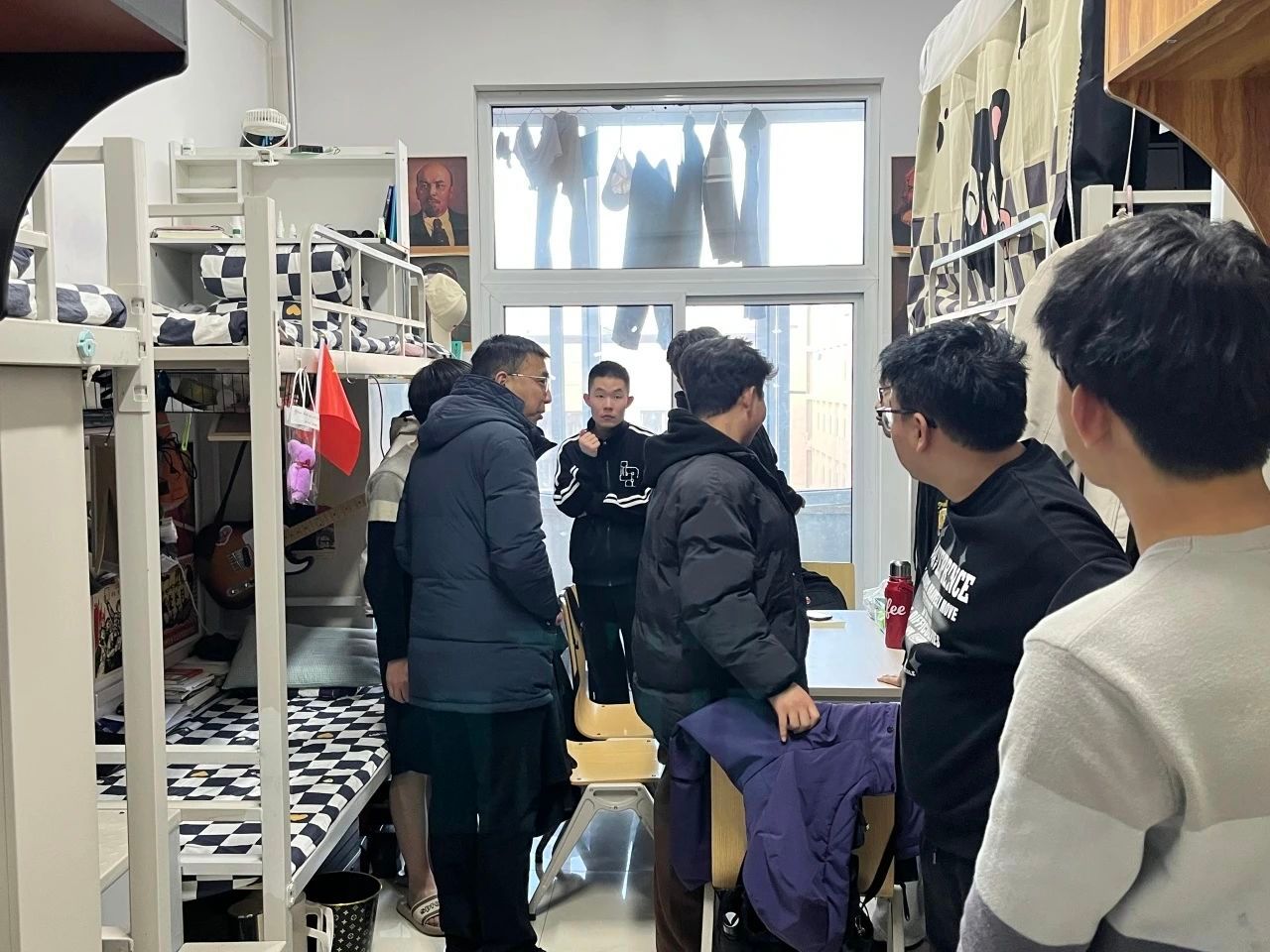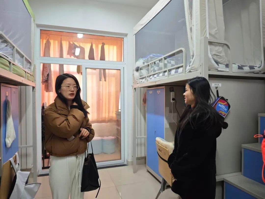 会议结束后,与会老师走进宿舍看望返校学生,与他们亲切交谈,询问学生假期的生活经历和新学期学习计划。