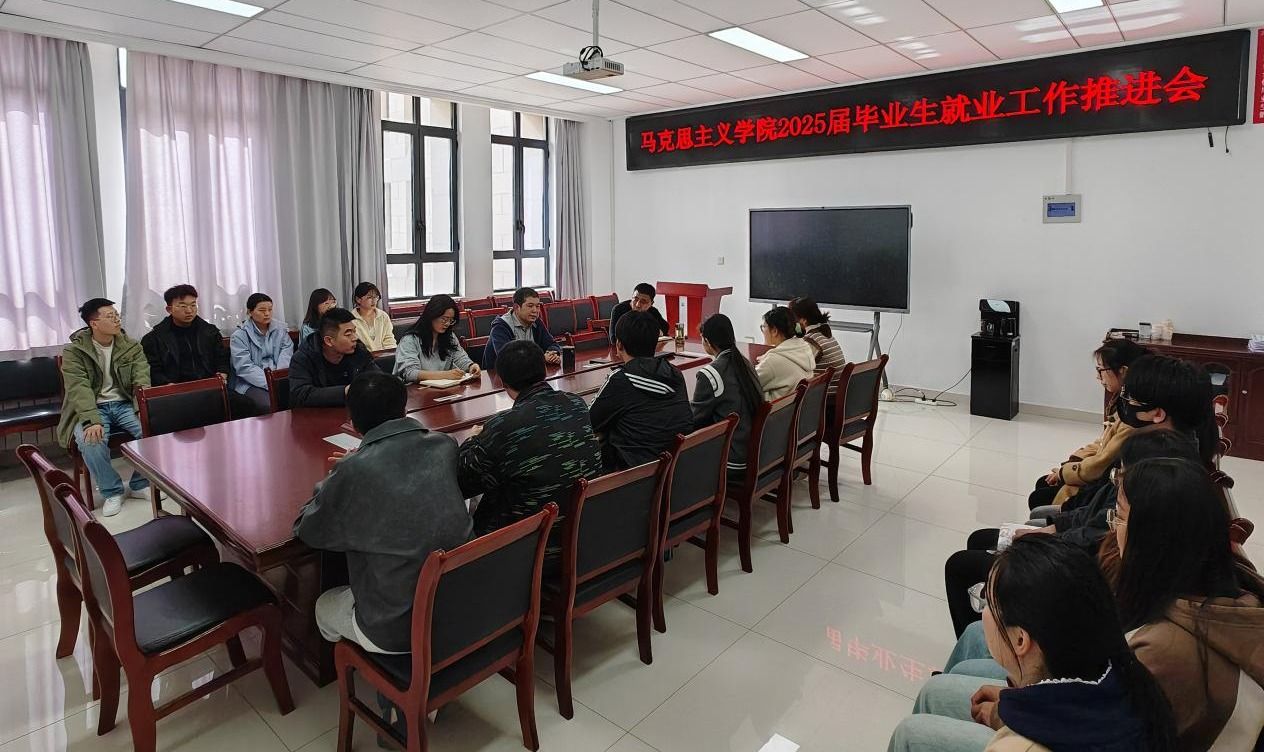 于3月25日在学院会议室召开就业工作推进会。主管研究生工作副院长刘建华老师、全体毕业班班主任及部分2025届毕业生参加会议,会议由党委副书记赵海龙老师主持。