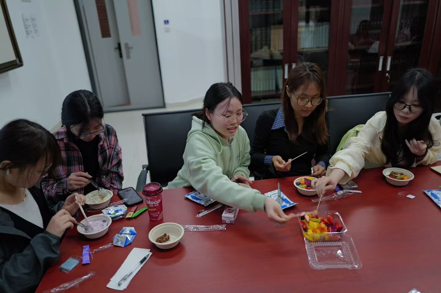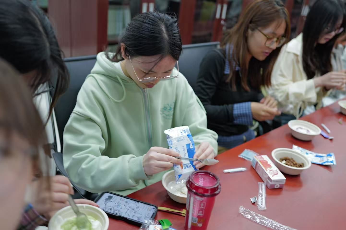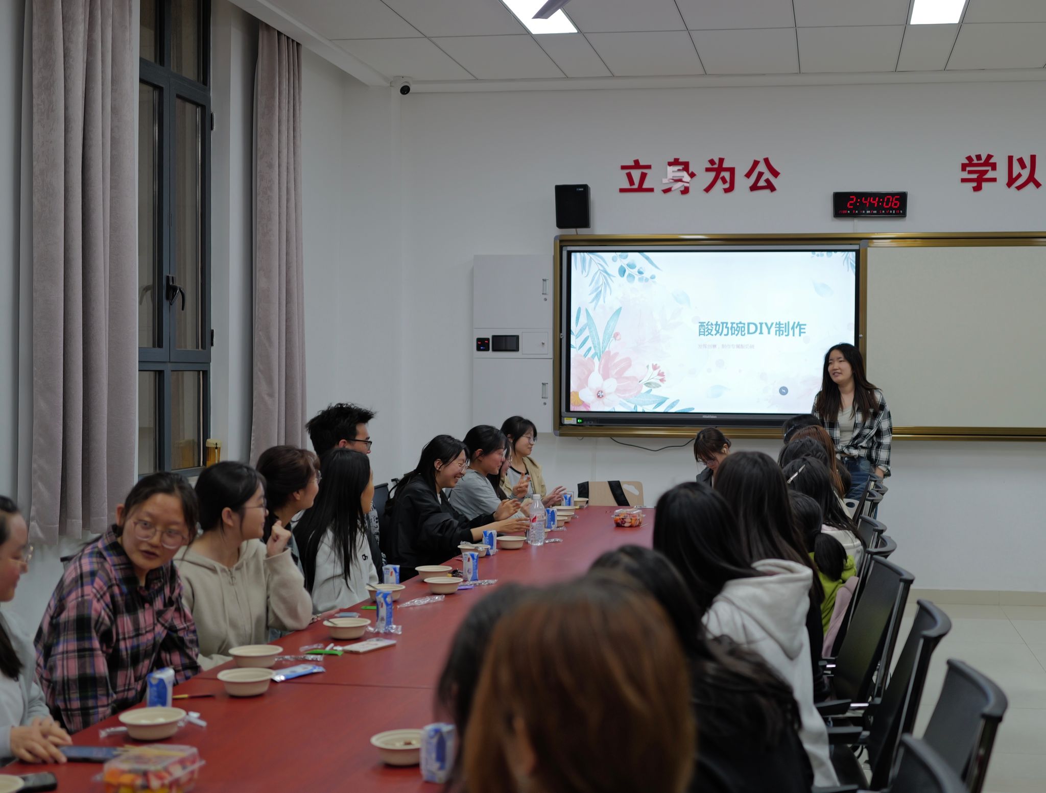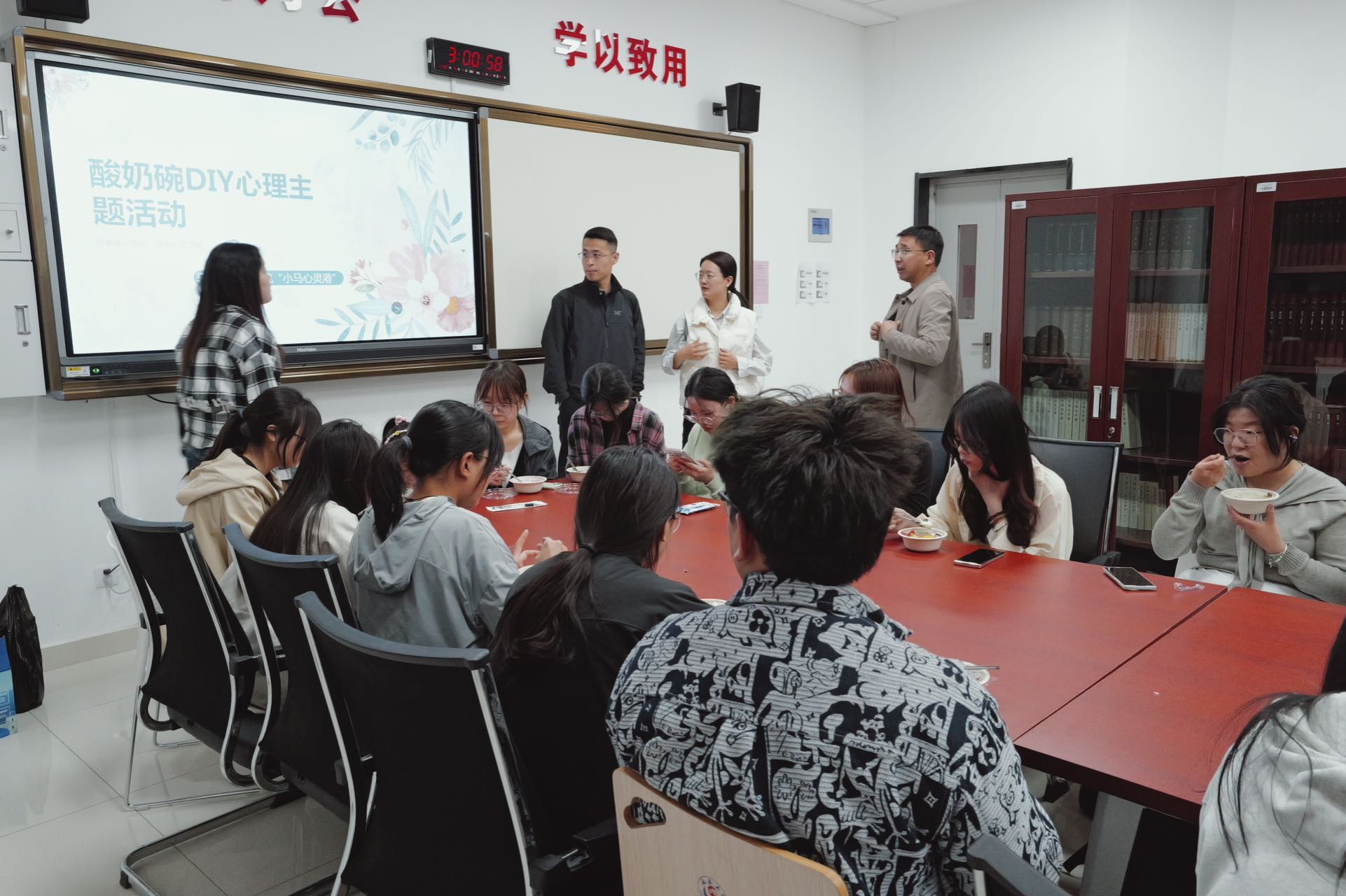 心理工坊第一期“酸奶碗DIY:治愈手作,甜暖心灵”活动在红色文献阅览室温馨开启。学院党委副书记赵海龙老师、团委书记郭忠義老师、党委组织员兼心理专干苗玉园老师与30位同学相聚于此,在主持人何雨轩的引导下,用创意与甜蜜编织了一段专属春日的温暖记忆。