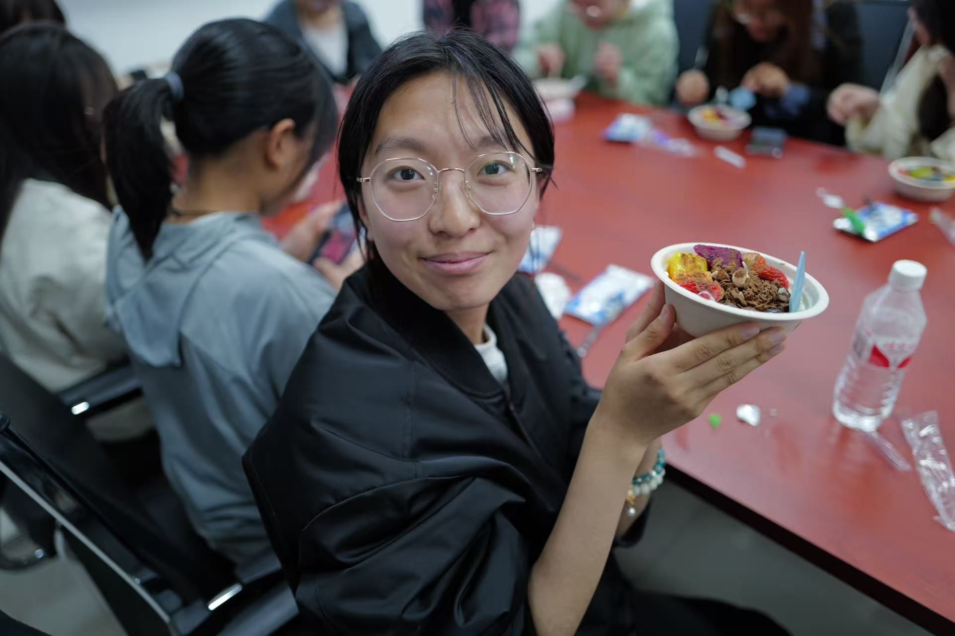 活动尾声,同学们感慨道:“专注做酸奶碗时,烦恼好像都消失了!”“认识了新朋友,今天是被治愈的一天!”一句句真挚的分享张贴在“心情墙”上,成为彼此心灵共振的温暖见证。赵海龙老师表示:“学院会持续倾听同学们的心声,以大家的需求为导向,策划更多形式新颖、内容走心的心理工坊活动,让每位同学都能在轻松温暖的氛围中收获心灵成长。”最后,集体合影定格下这场甜蜜之旅,每个人手中的酸奶碗不再只是一份甜点,更是一次与自己对话的契机——通过专注创作,同学们学会了用温柔的方式对待自己,让“自我关怀”成为可触摸的成长印记。