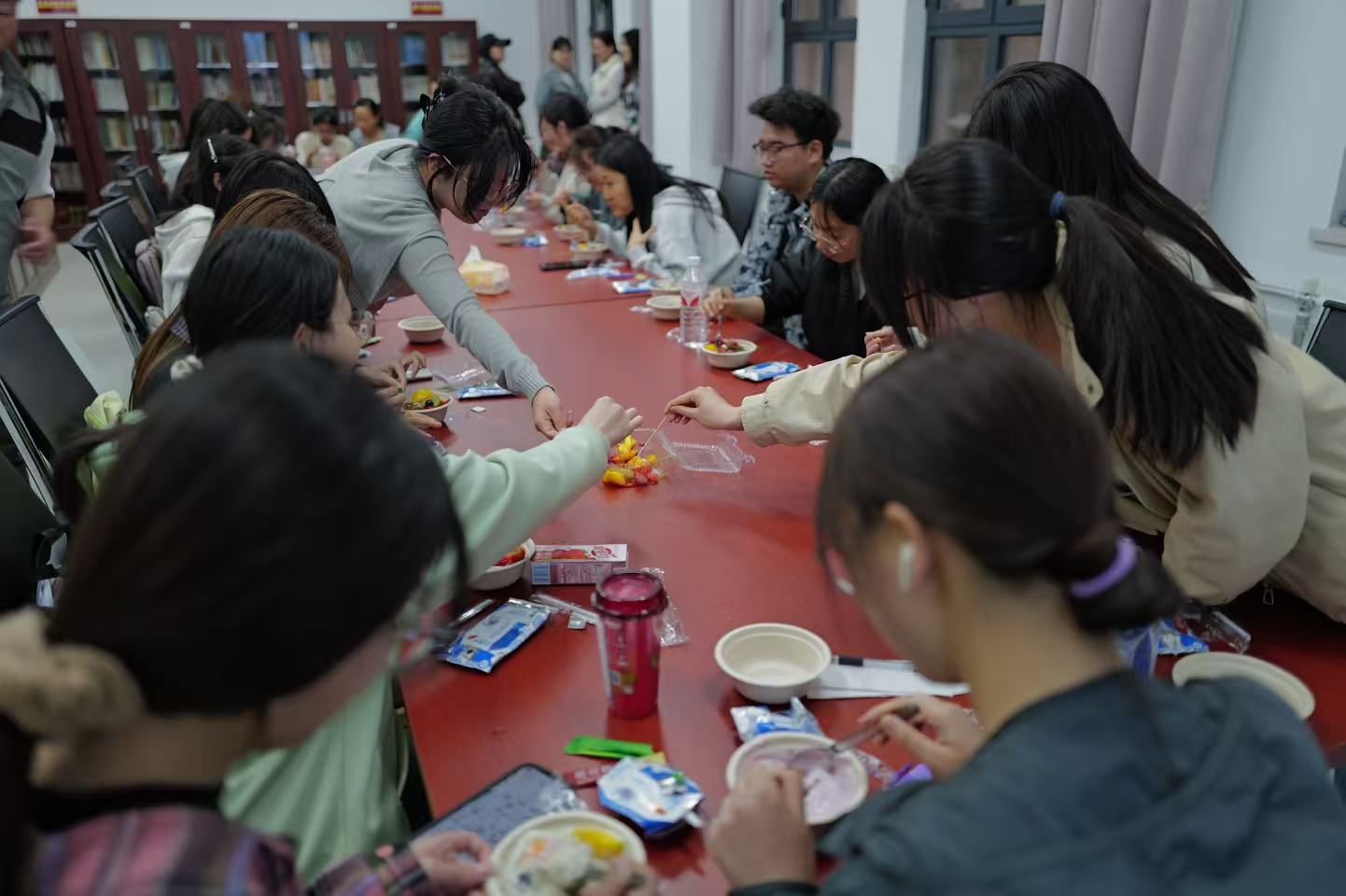 活动伊始,何雨轩以随机抽取序号的方式开启自我介绍环节,轻松打破了初见的拘谨。随后,一场别出心裁的“水果版逛三园”“水果萝卜蹲”游戏点燃现场——“香蕉园里有什么?”“苹果蹲完草莓蹲!”同学们在笑声中快速记住彼此,果香与欢闹成为这场治愈之旅的动人前奏。“本来担心会尴尬,没想到主持人设计的游戏让大家一下子就熟络了!”一位同学笑着分享道。