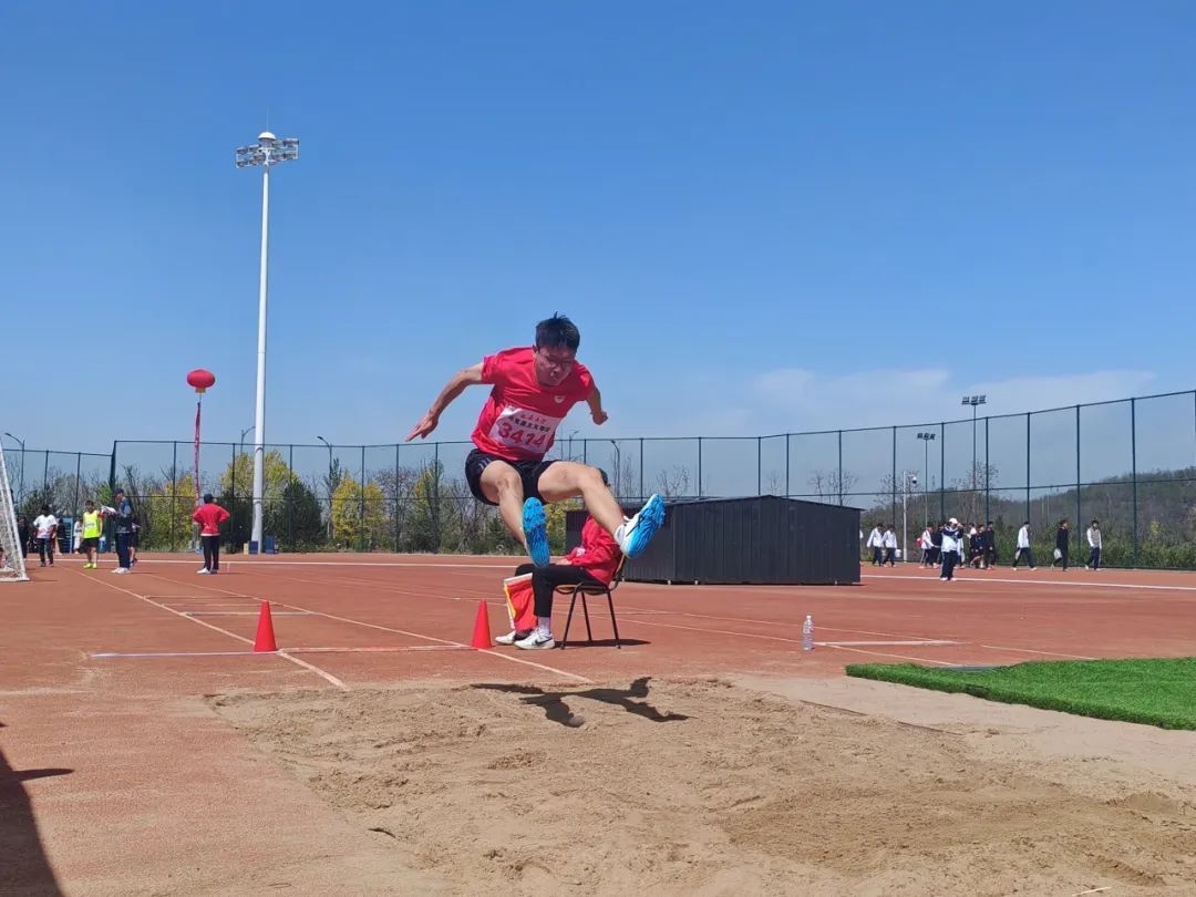 跳远:选手们助跑、起跳、腾空,每一次飞跃皆划出美丽弧线,挑战自我,向更远冲刺,沙坑中的脚印是拼搏的勋章。