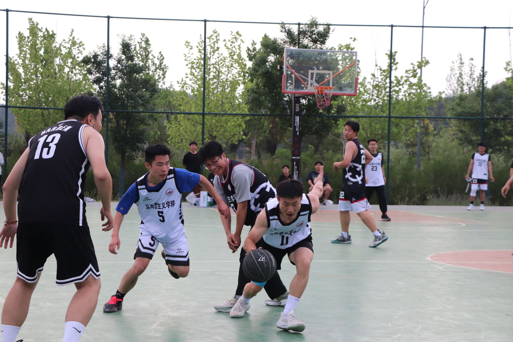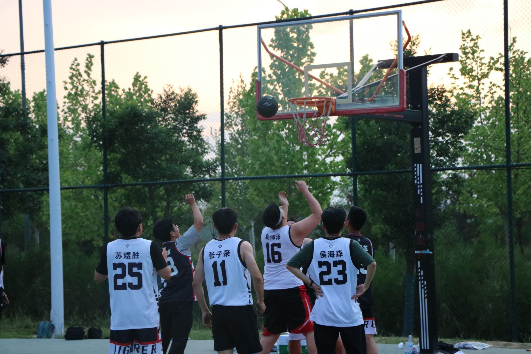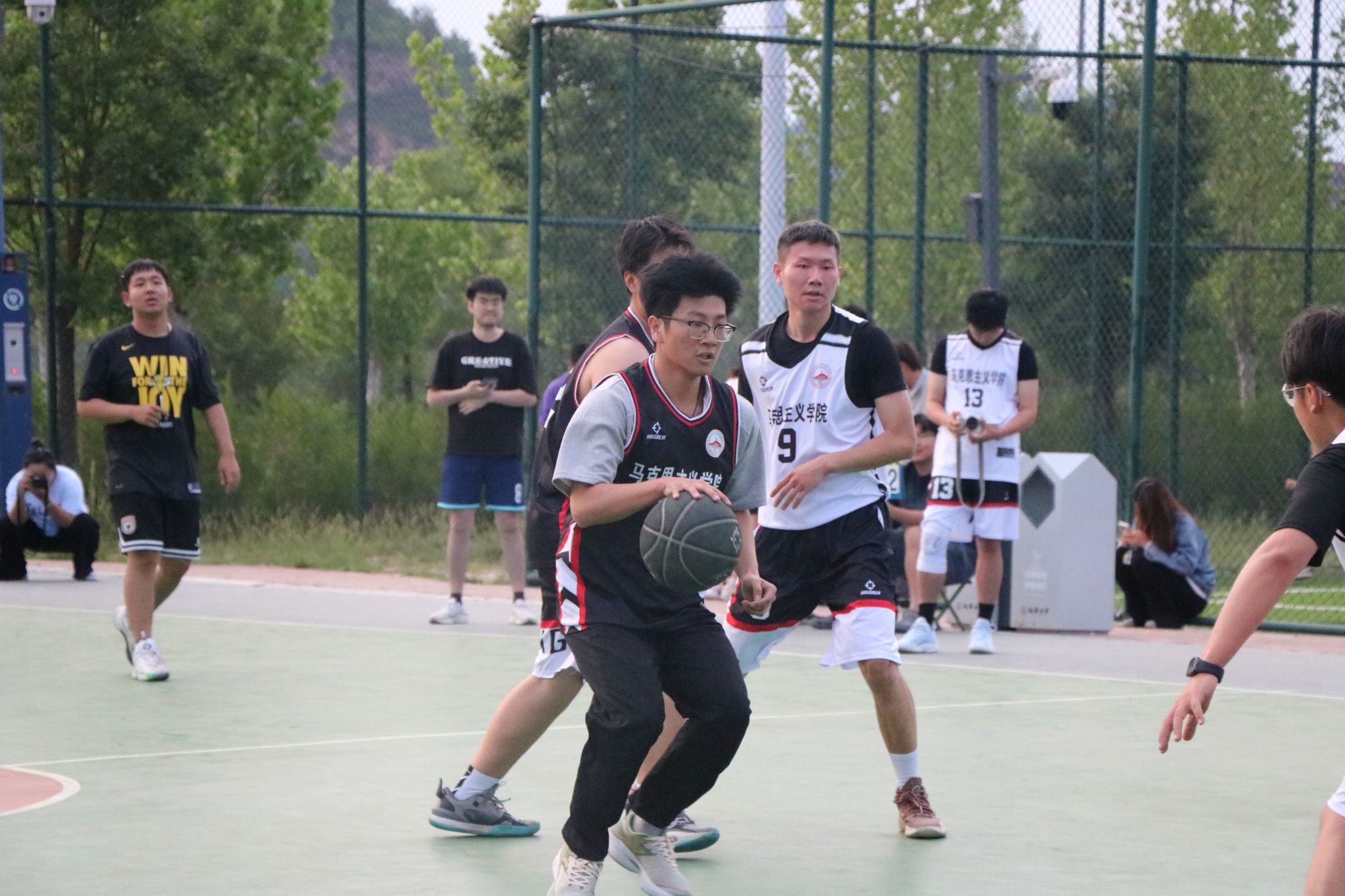 裁判员一声哨响,比赛正式开始。在篮球场上将球员们分为黑、白两队,我们可以看到双方队员们的高超球技。每一次运球,都融合了力量、速度与节奏;每一次传球,则体现了队友间的默契以及对于球场局面的把控;每一次投篮,不仅是力学与美学的完美结合,更是汗水与天赋的融合。双方那势如破竹的一次次进攻以及密不透风的防守都给我们呈现出了一幅幅视觉盛宴。球员们的奔跑、跳跃都是体力与意志力的生动诠释,在球场上对队员所说的那句“别慌”无不体现着关心与在意,球员们同心协力,相互支持共同努力为大学生活增添了浓墨重彩的一笔。最后郭忠義老师来到了篮球场上,穿上了球员的队服和球员们一起打球,他的到来使球场上一片沸腾,促进了师生间的美好交流共进。