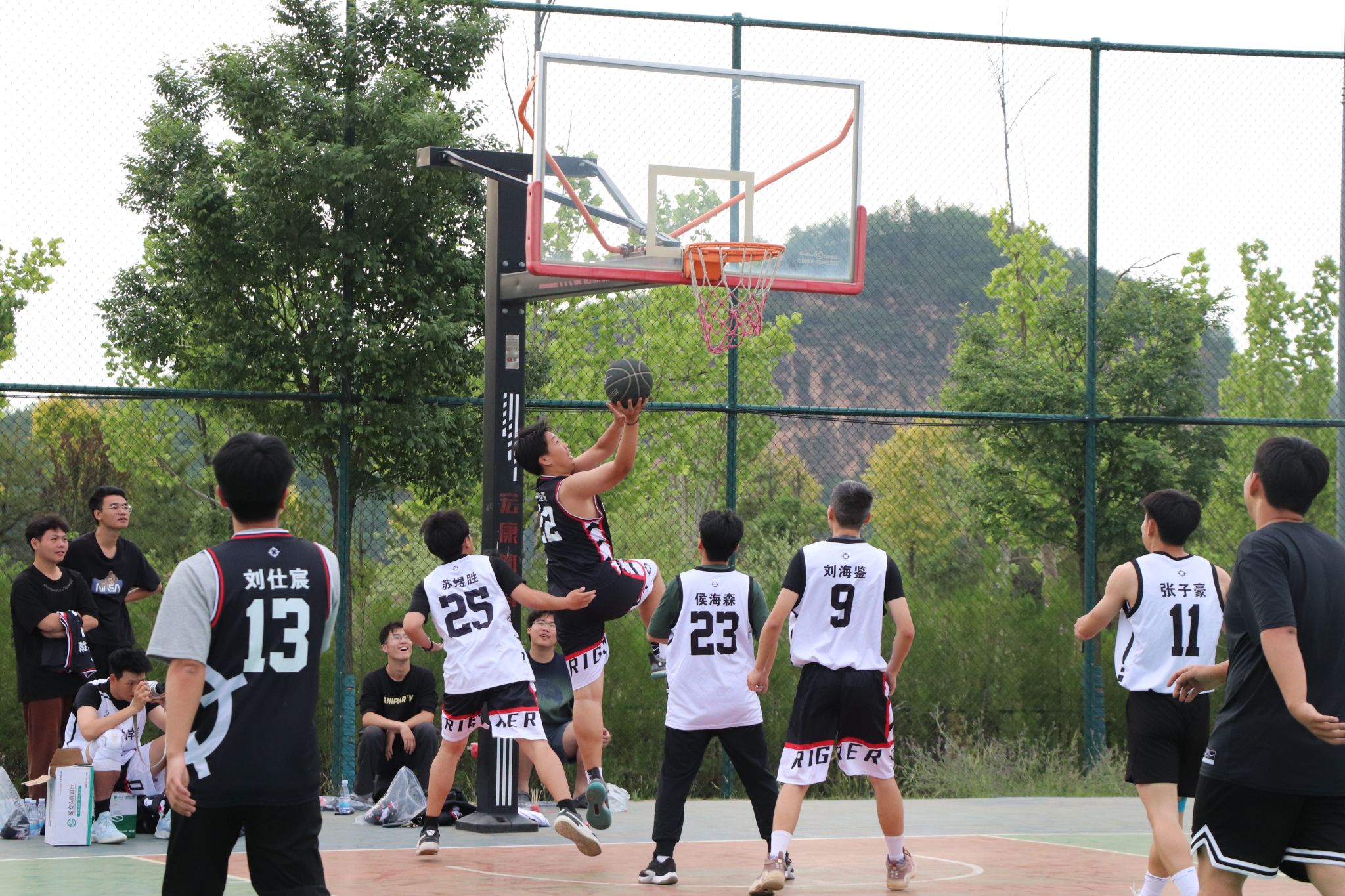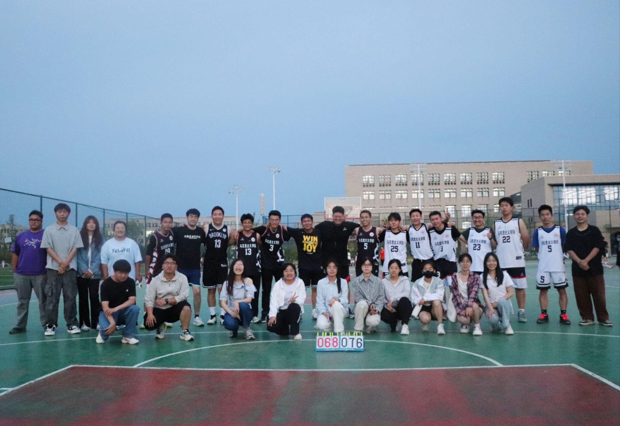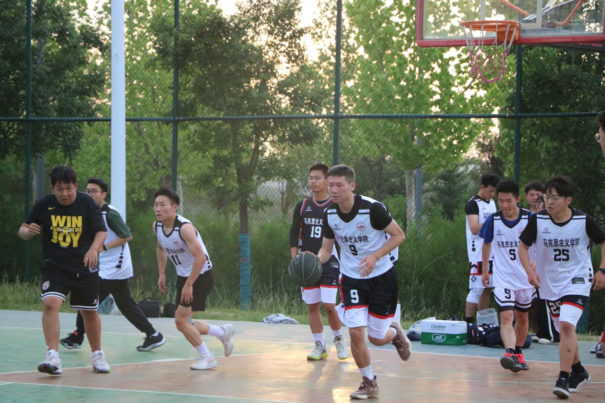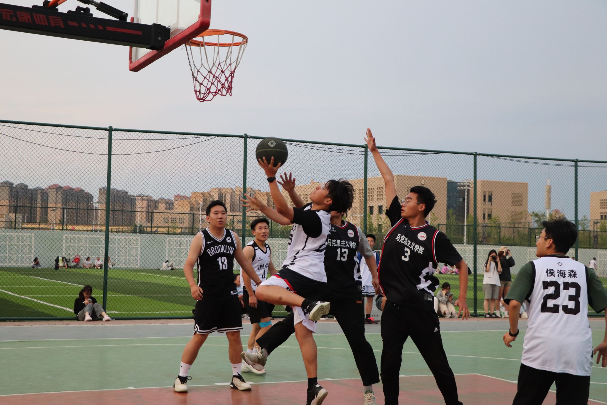 裁判员一声哨响,比赛正式开始。在篮球场上将球员们分为黑、白两队,我们可以看到双方队员们的高超球技。每一次运球,都融合了力量、速度与节奏;每一次传球,则体现了队友间的默契以及对于球场局面的把控;每一次投篮,不仅是力学与美学的完美结合,更是汗水与天赋的融合。双方那势如破竹的一次次进攻以及密不透风的防守都给我们呈现出了一幅幅视觉盛宴。球员们的奔跑、跳跃都是体力与意志力的生动诠释,在球场上对队员所说的那句“别慌”无不体现着关心与在意,球员们同心协力,相互支持共同努力为大学生活增添了浓墨重彩的一笔。最后郭忠義老师来到了篮球场上,穿上了球员的队服和球员们一起打球,他的到来使球场上一片沸腾,促进了师生间的美好交流共进。