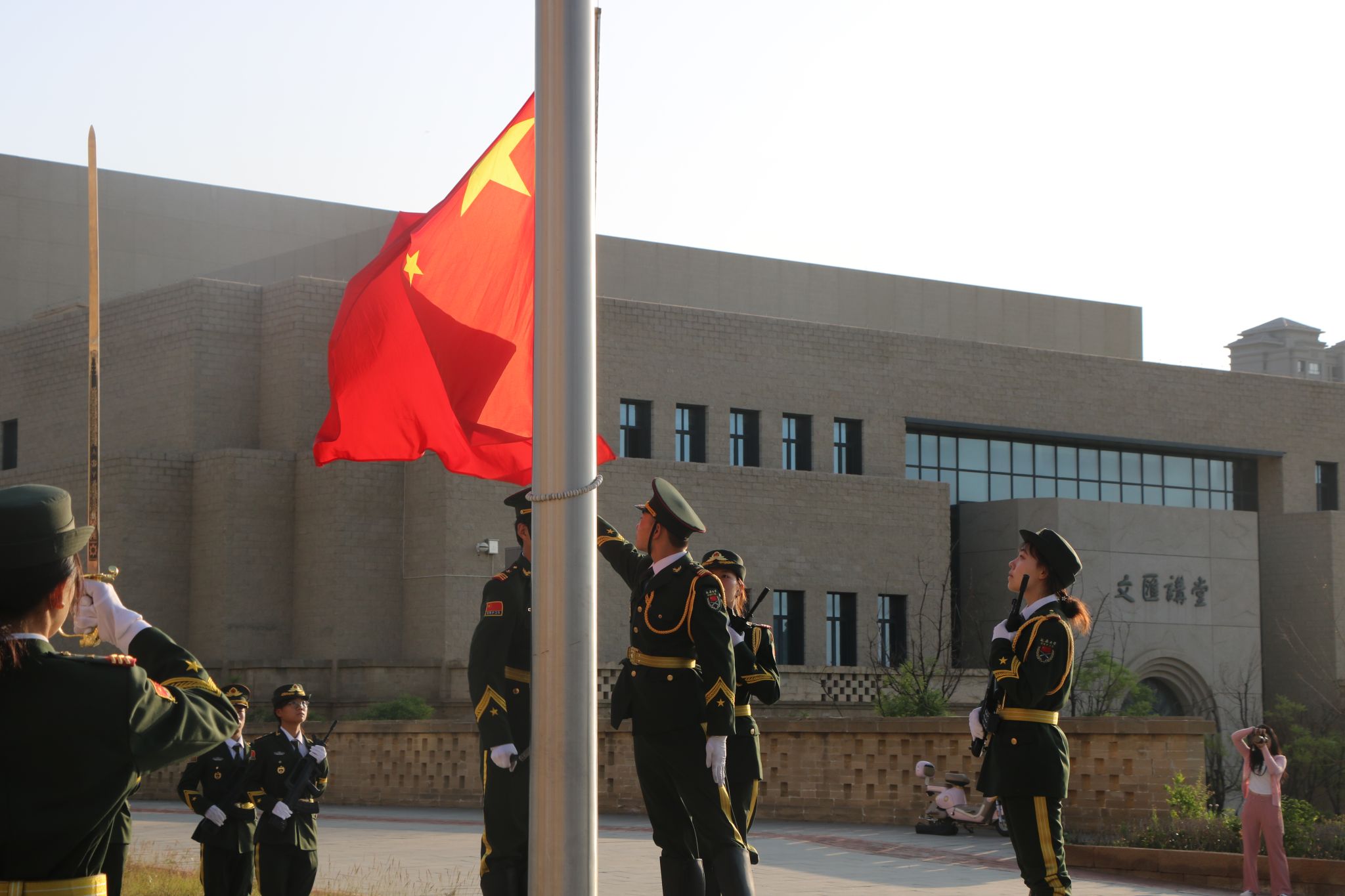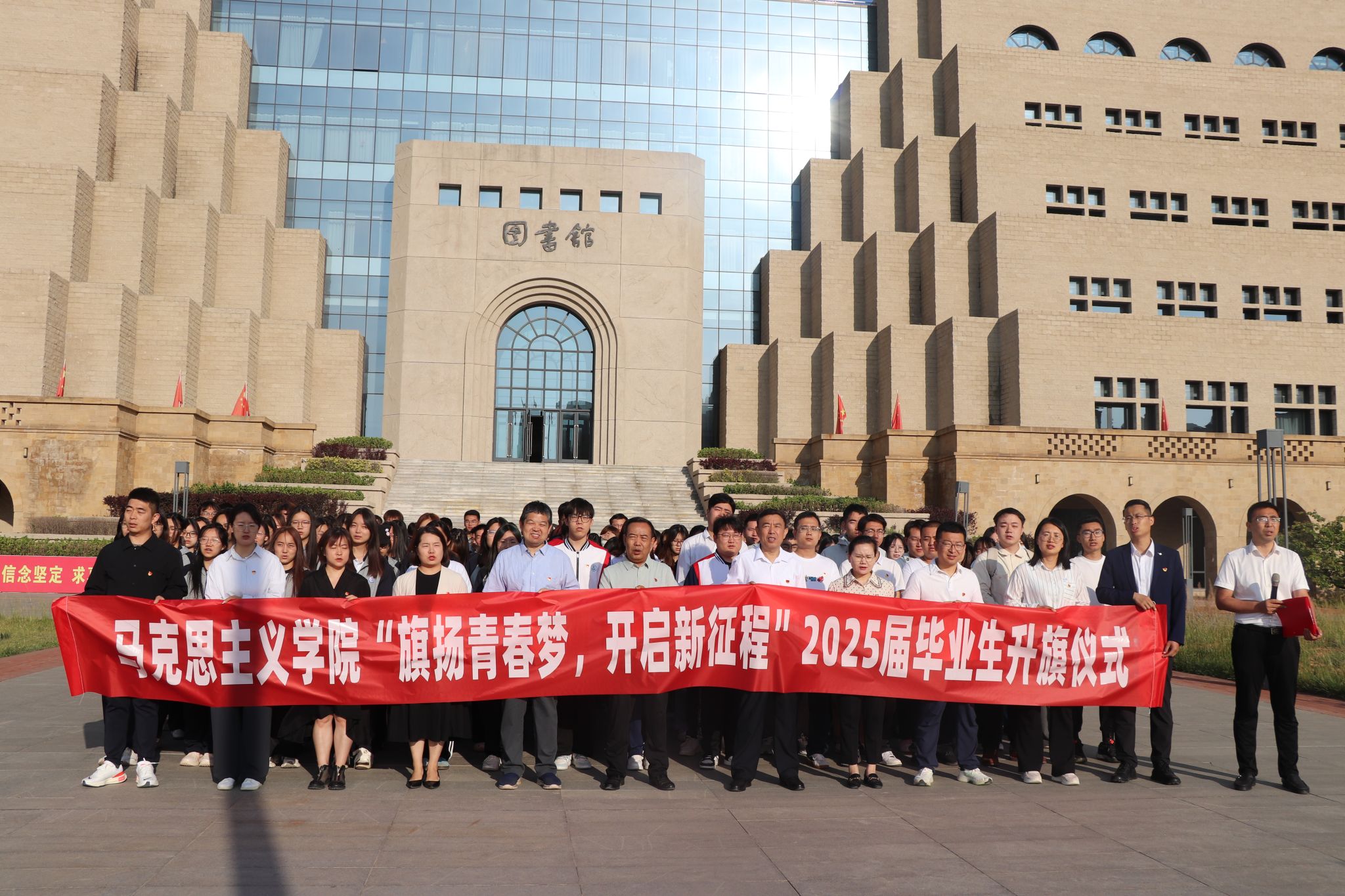 党委举行“旗扬青春梦,开启新征程”主题升旗仪式暨“大学最后一堂党课”。全体院领导、行政干部、辅导员及全院学生参加此次升旗仪式。升旗仪式由党委副书记赵海龙主持。