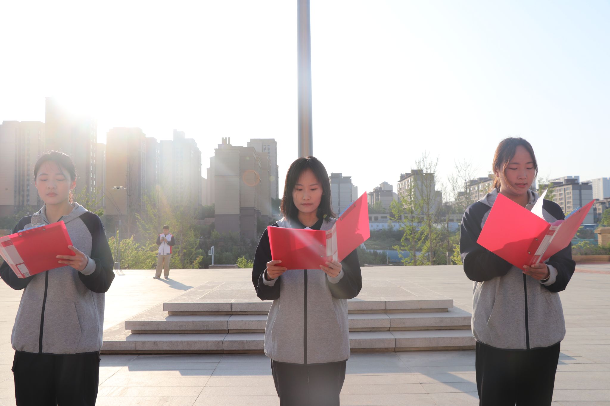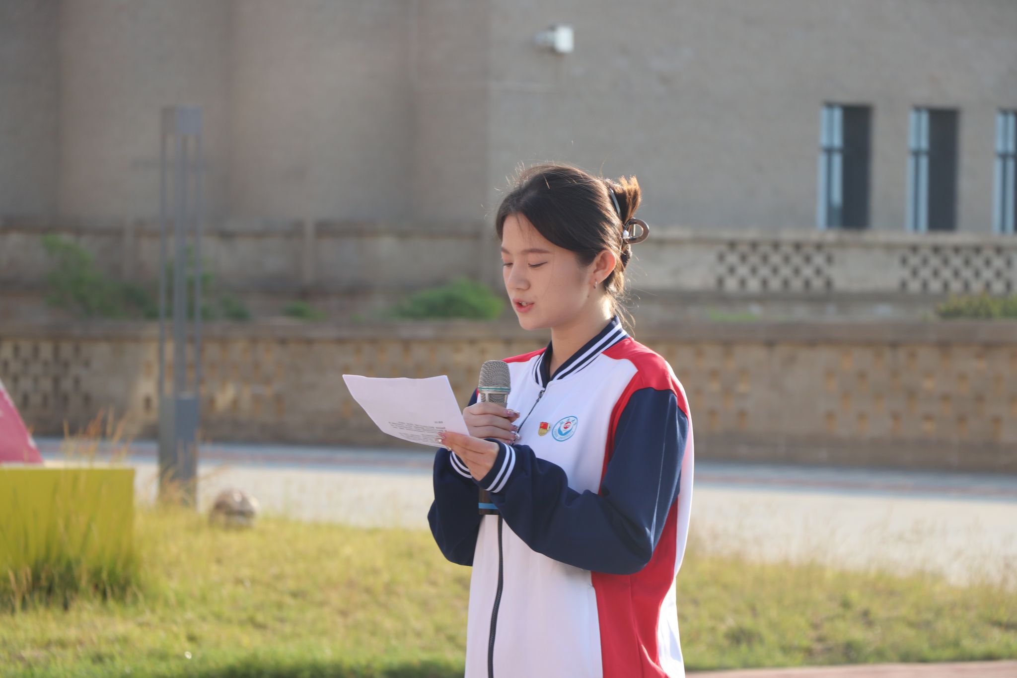 活动在庄严的国歌声中拉开帷幕,五星红旗冉冉升起,全体师生肃立致敬。圣地青马宣讲团以诗韵为纽带,传递了与祖国同频、共绘时代华章的坚定信念。2025届毕业生代表陈思敏以铿锵之言回顾四年成长,誓言践行“立身为公、学以致用”校训,以信仰之光引领征程。