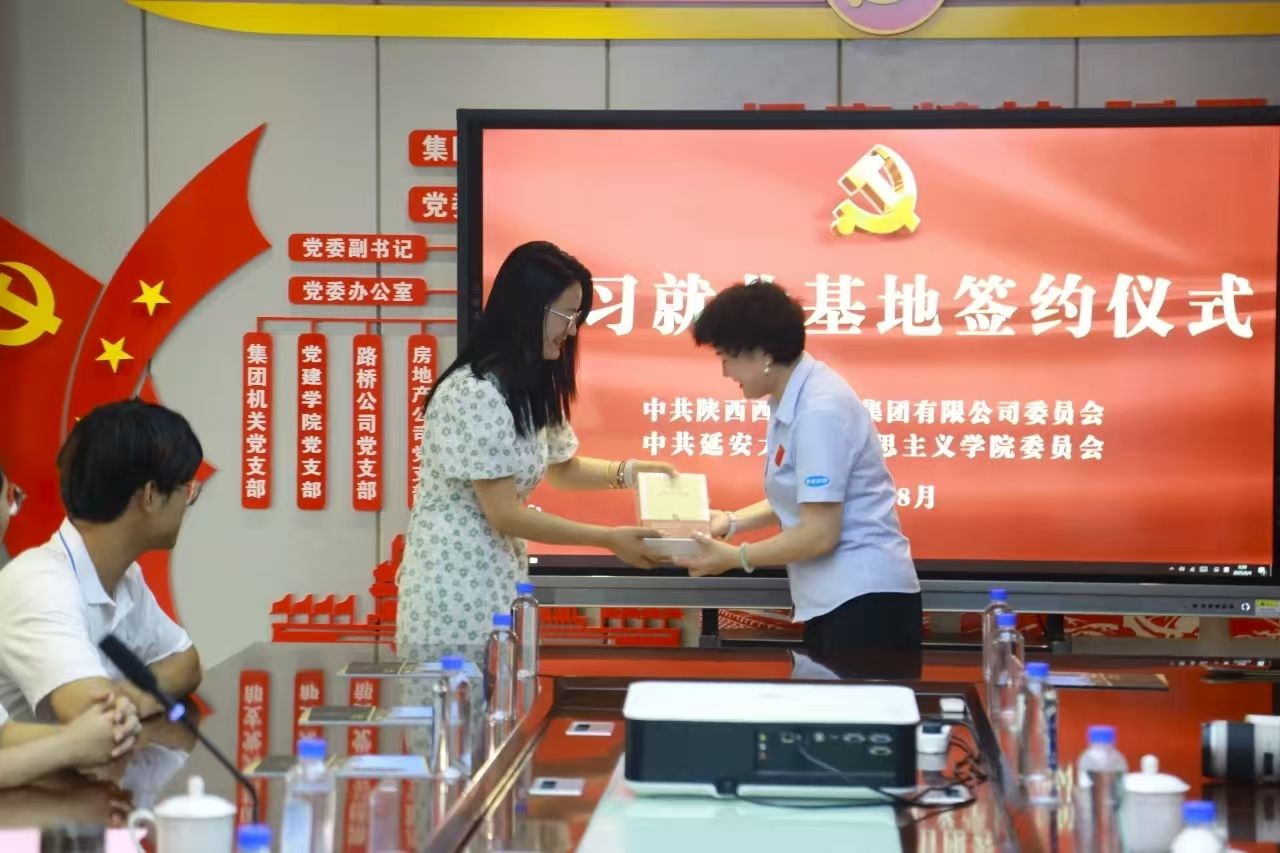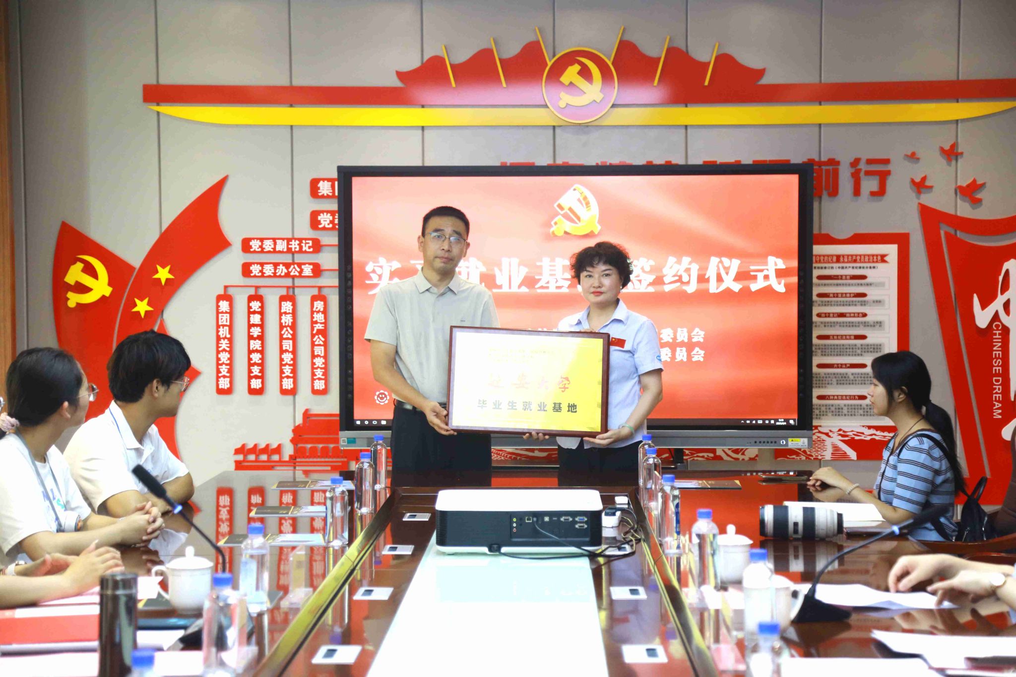 在走访交流座谈会上,调研组与单位负责人深入交流,介绍了我校各学院的学科优势、人才培养特色及毕业生就业情况,用人单位详细介绍了其发展现状、人才需求以及校企合作意向。双方围绕人才培养、实习实践、毕业生就业、科研协作等方面进行了广泛深入的探讨。赵海龙向用人单位授挂“实习就业基地”牌匾并签署了实习就业基地合作协议。苗玉园向合作单位赠送了《平凡的世界》及党史党建等相关书籍资料。