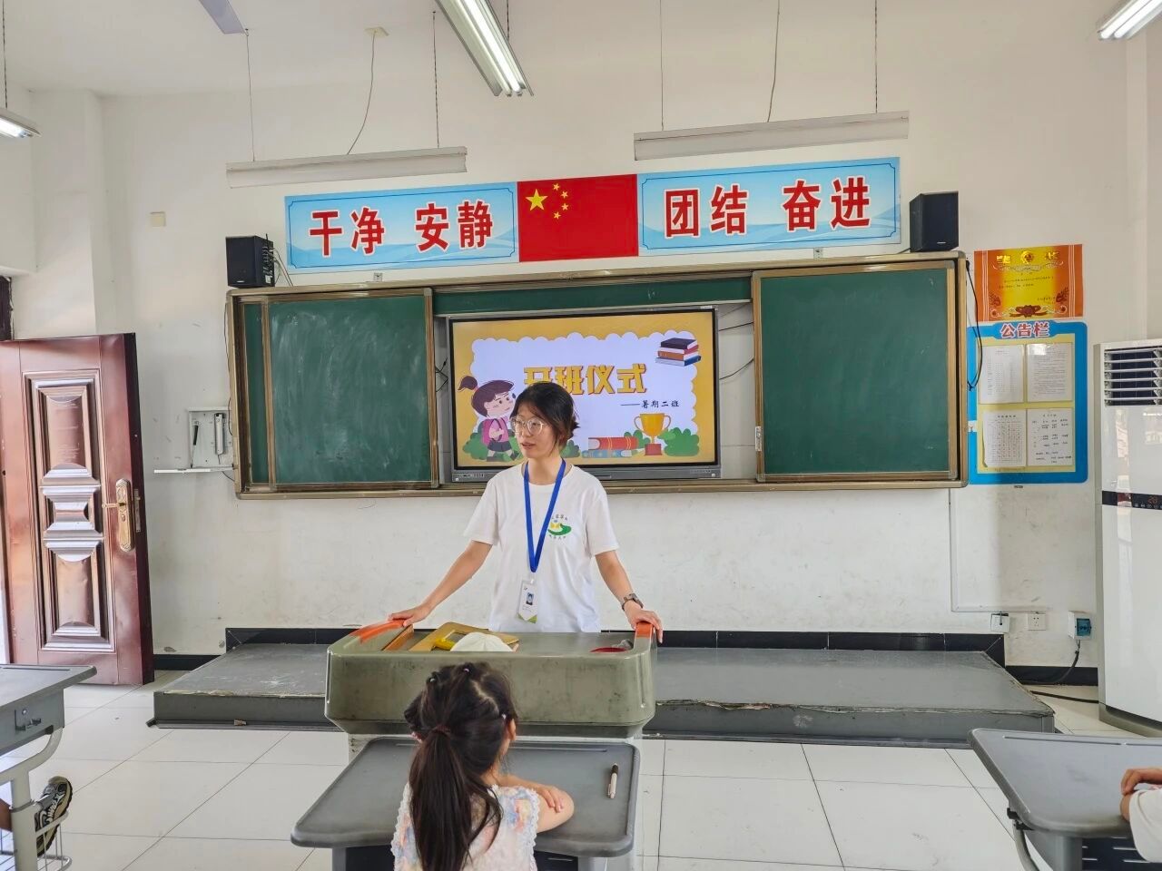 根据赵波同志和吕红江校长的建议,为促进东赵村乡村教育发展,实践团队开展暑期支教活动,团队举办了以“七彩暑期”为主题的开班仪式,包括安全教育、课程介绍、破冰行动三个主要内容。在两位班主任老师的安排下,学生按年级大小分为两个班,并有条不紊地开展课堂活动。
