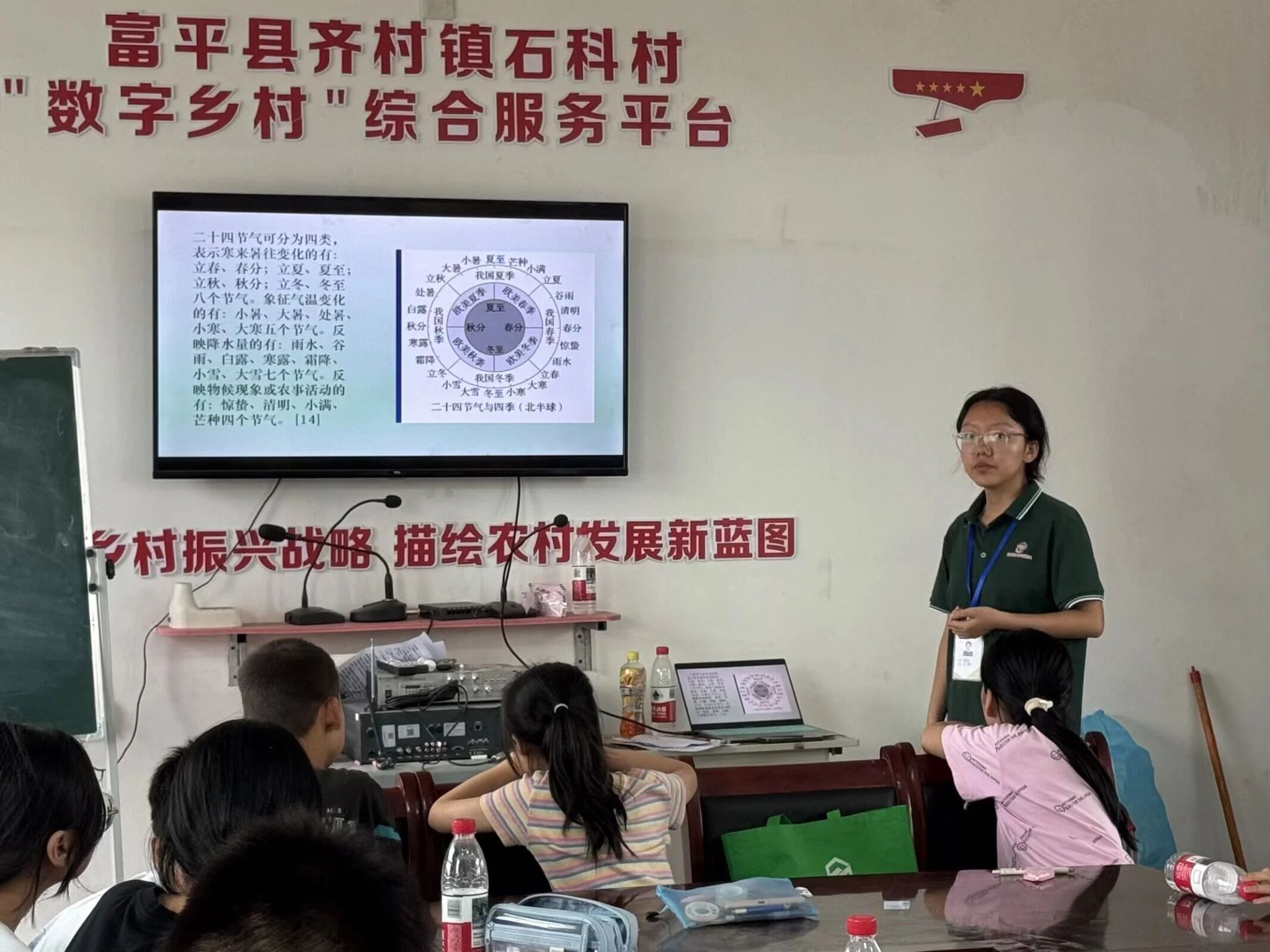 针对石科村留守儿童语言能力提升需求,团队精心设计并实施系列特色课程。开设基础拼音启蒙课程,通过趣味认读、声调练习筑牢语言学习根基;同步开展国家通用手语推广课程,搭建无障碍沟通桥梁;推出“字里中华”专题教学,强化现代汉语规范使用与朗诵表达能力;设置节气主题认知课程,将语言学习融入传统文化知识载体。课程设计紧密围绕普通话推广目标,在拼音筑基、手语辅助、文化浸润的多维教学中厚植文化认同,让语言学习成为传承文明的重要纽带。