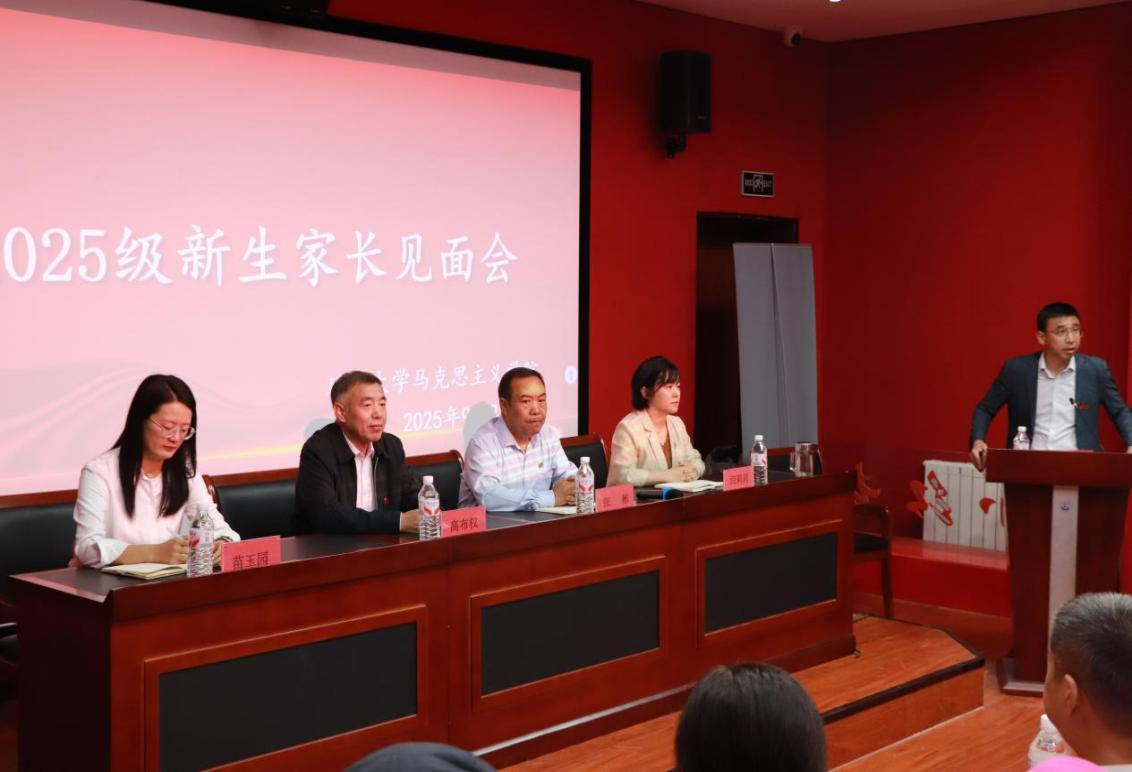 于学院一楼报告厅召开2025级新生家长见面会。学院党委书记张彬、院长高布权、辅导员闫莉莉、党委组织员苗玉园及新生家长参加了本次见面会。会议由学院党委副书记赵海龙主持。