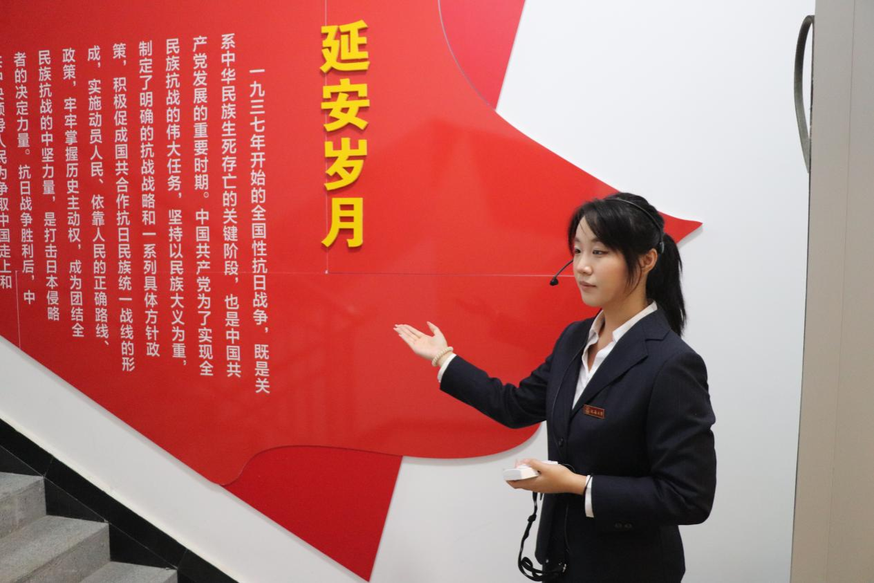 引领“大思政”育人实践宣传片,并在孙瑜垚同学的讲解带领下参观了学院红色楼宇文化,直观感受学院浓厚的红色文化氛围与红色育人举措。
