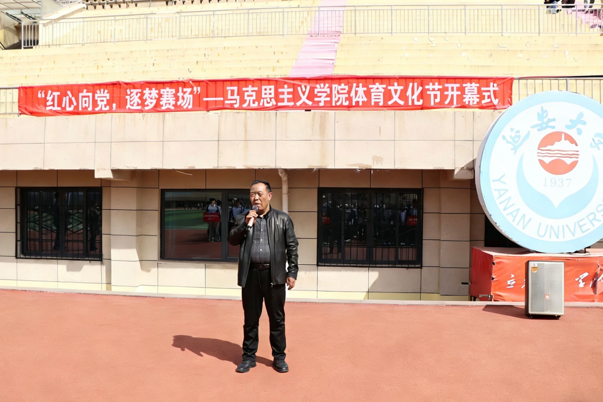 学院研究生及本科生各方阵整齐划一,精神抖擞,展现马院学子昂扬向上的精神风貌。开幕式在庄严的国歌声中拉开帷幕。随后,裁判员代表张万敏和运动员代表肖柏杨进行了宣誓,承诺恪守体育精神、尊重规则、公平竞赛、公正执裁。活力四射的啦啦操表演《我的未来式、cheer up》将现场气氛推向高潮,同学们用动感的舞姿和饱满的热情,为即将出征赛场的运动健儿们加油助威,展现了马院青年蓬勃的朝气与无限活力。圣地青马宣讲团带来的节目《延安红色体育颂》,以声为炬,深情讴歌了延安时期的体育精神与革命传统,将红色基因与体育文化深度融合,传递了马院学子红心向党、敢于追梦的坚定信仰与时代担当,为体育文化节注入了深厚的文化内涵与精神力量。伴随着热烈的掌声与欢呼,学院党委书记张彬宣布91热爆