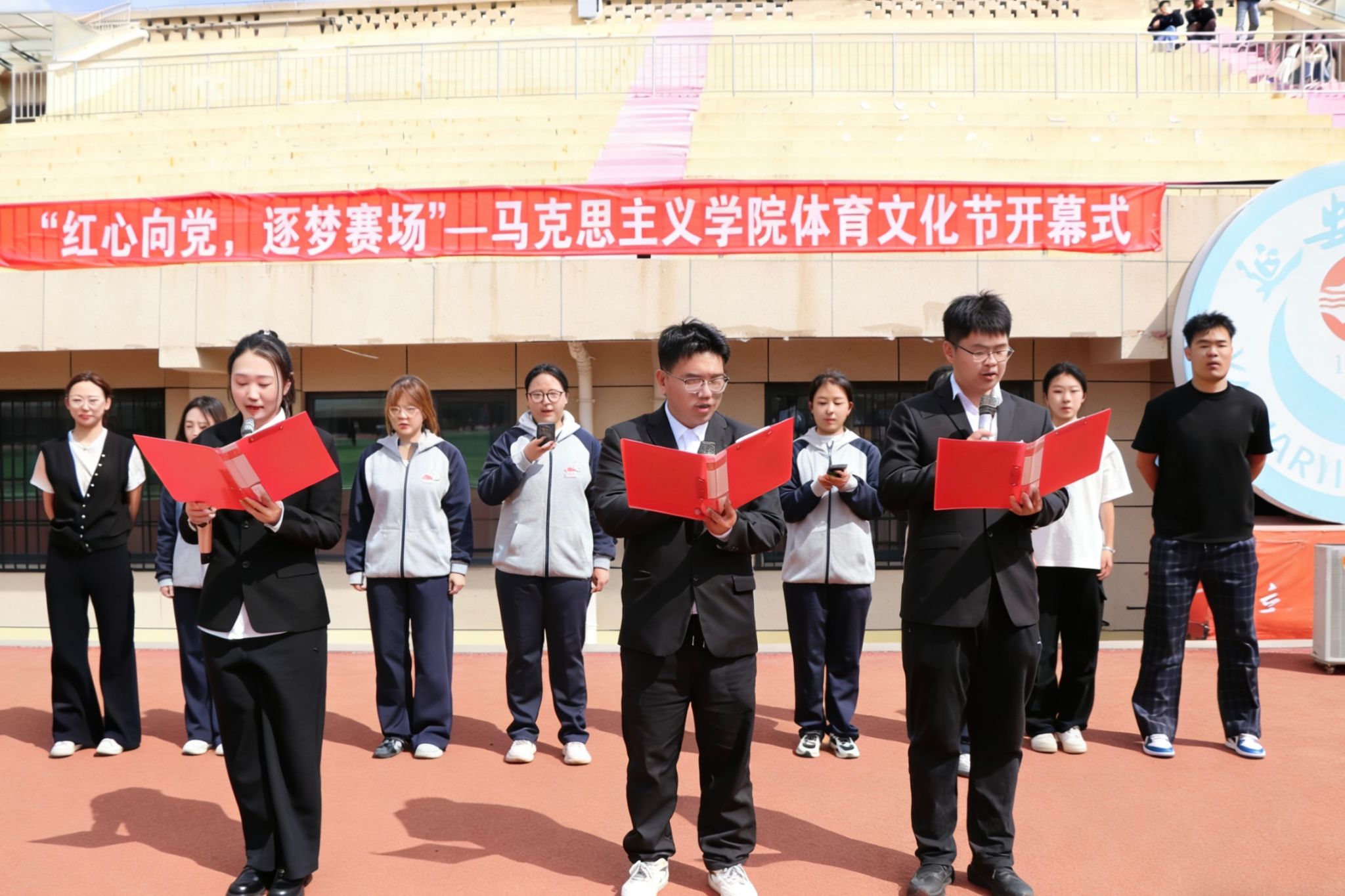 在新城校区田径场举行“红心向党 逐梦赛场”体育文化节开幕式。学院党委书记张彬、副书记赵海龙、组织员苗玉园及全体运动员参加开幕式,开幕式由学院团委书记闫莉莉主持。