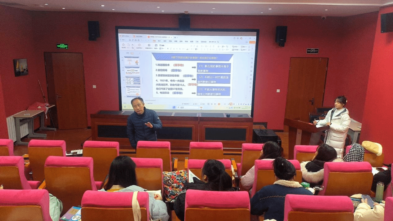 一楼报告厅开展了学科思政专业教学技能实训的第十九期活动。本次实训活动试讲人为邹锦颖同学和吉雨晨同学,两位同学试讲的内容分别是高中思想政治必修四第三课第二框《世界是永恒发展的》和初中政治九年级上册第一课第一框《踏上强国之路》。
