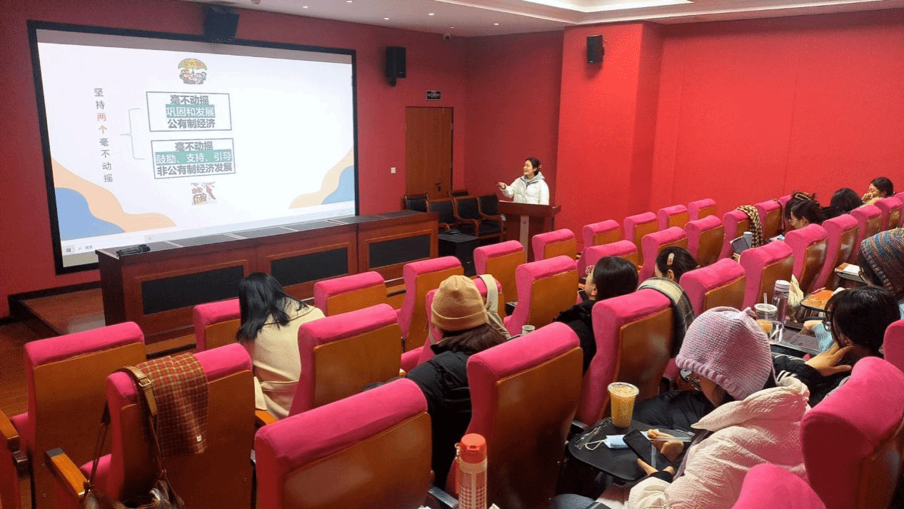 一楼报告厅开展了学科思政专业教学技能实训的第十六期活动。本次实训活动试讲人为张孟玉同学和李晓莹同学,两位同学试讲的内容分别是高中思想政治 必修二第一课第二框《坚持两个毫不动摇》和必修四第六课第二框《价值判断与价值选择》。