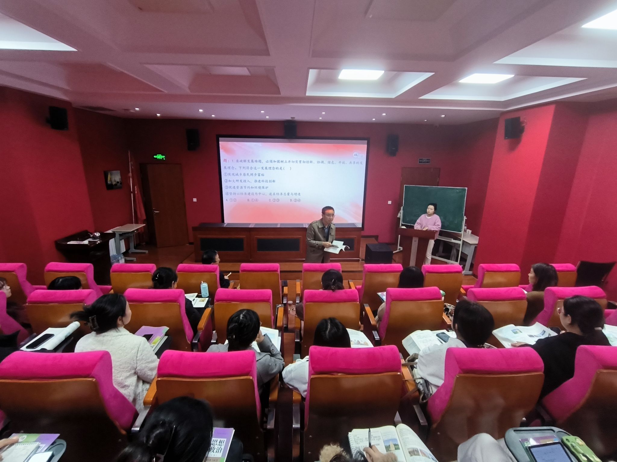 李娜娜同学试讲的是高中政治必修二的《坚持新发展理念》。她主要通过案例和思考题来引导同学们认识新发展理念的内容及其内部关系。课程中分别运用了讲授法和讨论法以及合作探究法等,使学生明确了新发展理念的具体内容,以及如何贯彻新发展理念。课程中还强调,要对五大新发展理念的具体内容有所区分。试讲结束后,在教师评价环节,杨文军老师和赵海龙老师就讲课方式等问题进行了指导,对教学环节的内容安排指出了不足之处,叮嘱在今后要加强知识积累以应对课堂中的各种问题。