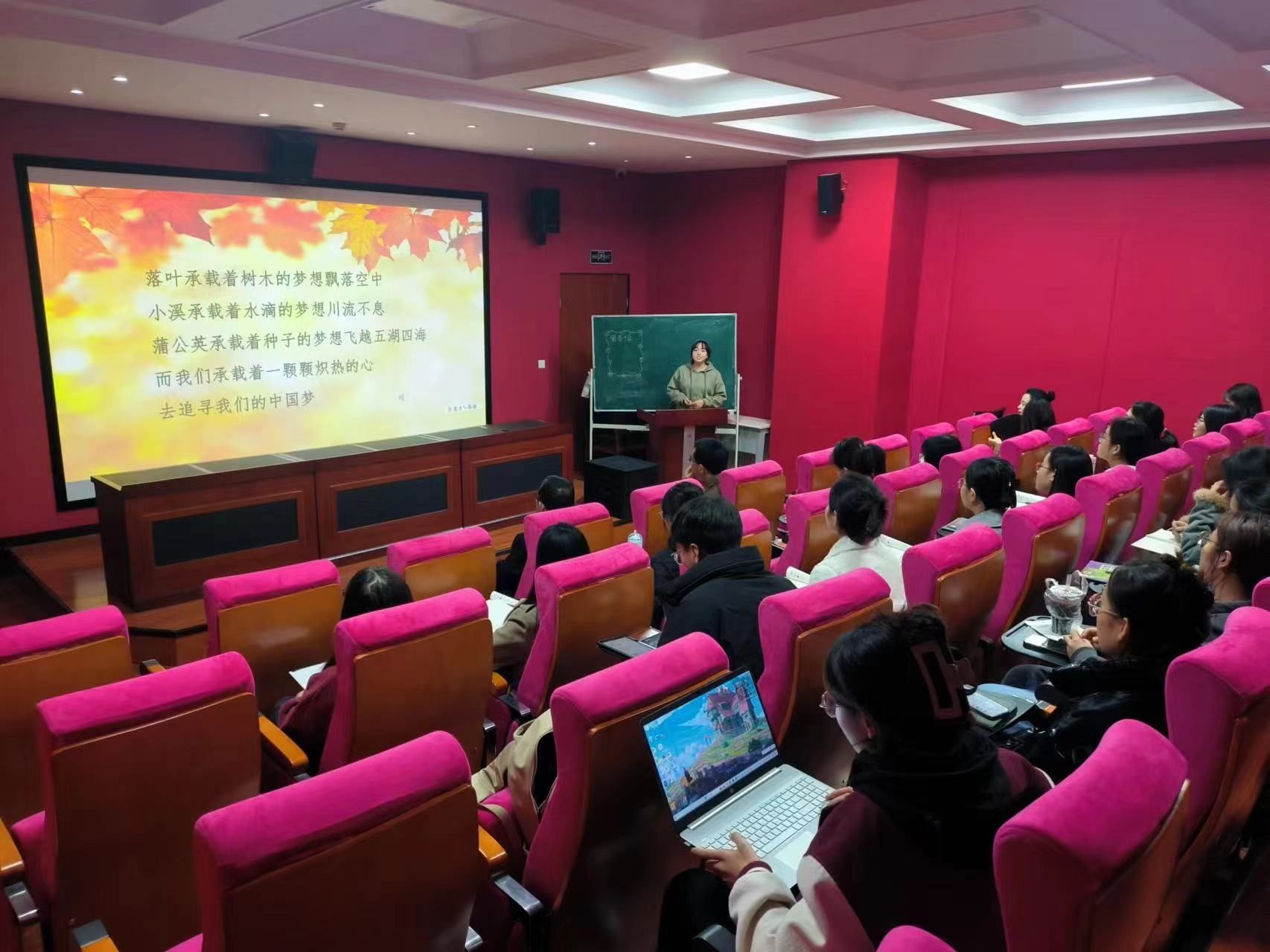一楼报告厅开展了学科思政专业教学技能实训的第十三期活动。本次实训活动试讲人为梁钰同学和李娜娜同学,两位同学试讲的内容分别是初中政治《道德与法治》第八课第一框《我们的梦想》和高中思想政治必修二《经济与社会》第三课第一框《坚持新发展理念》。