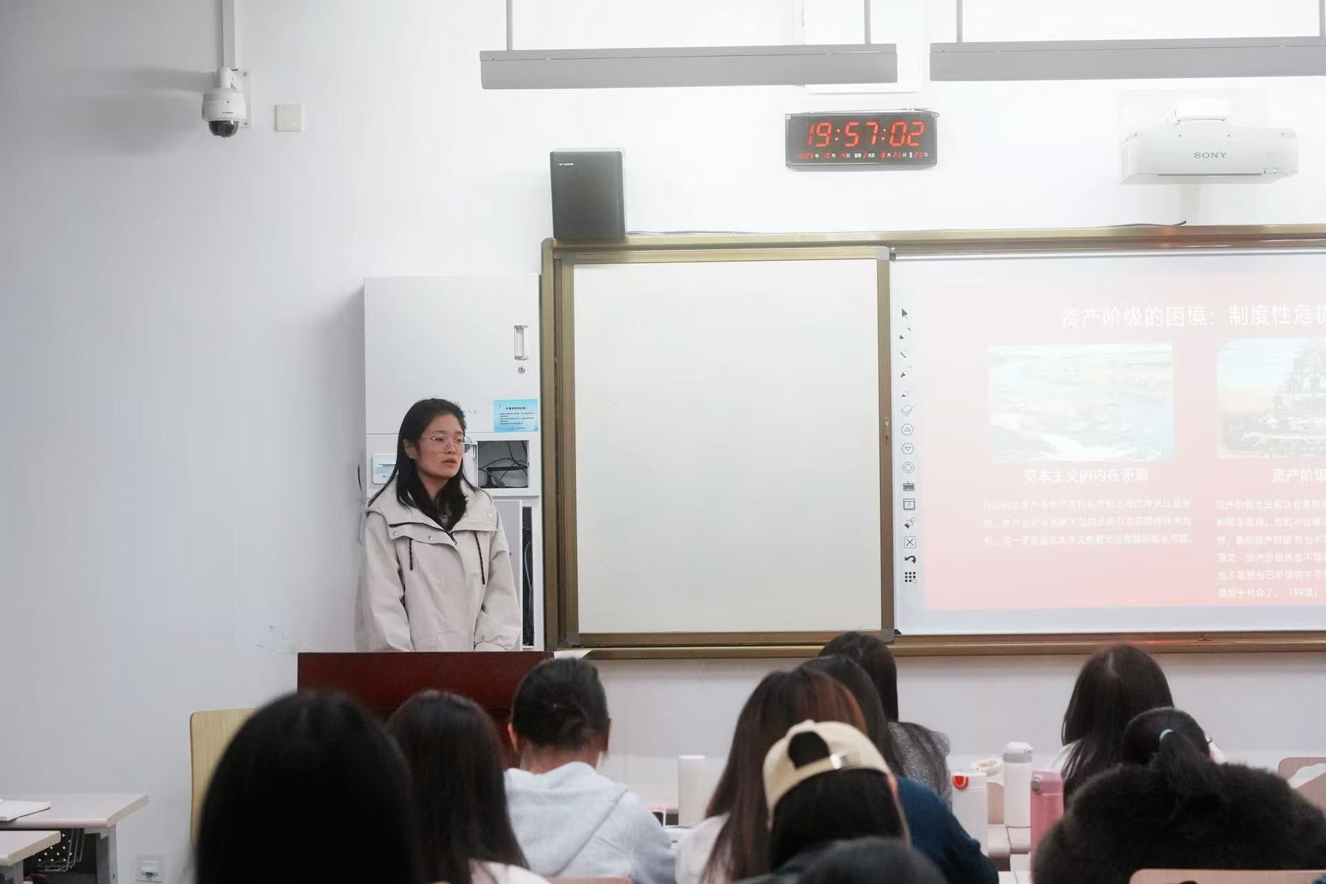 她首先充分肯定了前面同学认真准备的成果,并进一步强调,学习马克思主义理论,关键在于“内化于心,外化于行”,真正做到学以致用。她鼓励大家要将经典理论与发展着的实践相结合,学会用发展中的马克思主义来分析和解决现实中的新问题。同时,她特别指出,认真研读原著是这一切的基础,要做到“读原著,明原理,常读常新”,在阅读中务必伴随深入的思考,并以此不断提升自身能力,为未来走上工作岗位奠定坚实的理论基础。