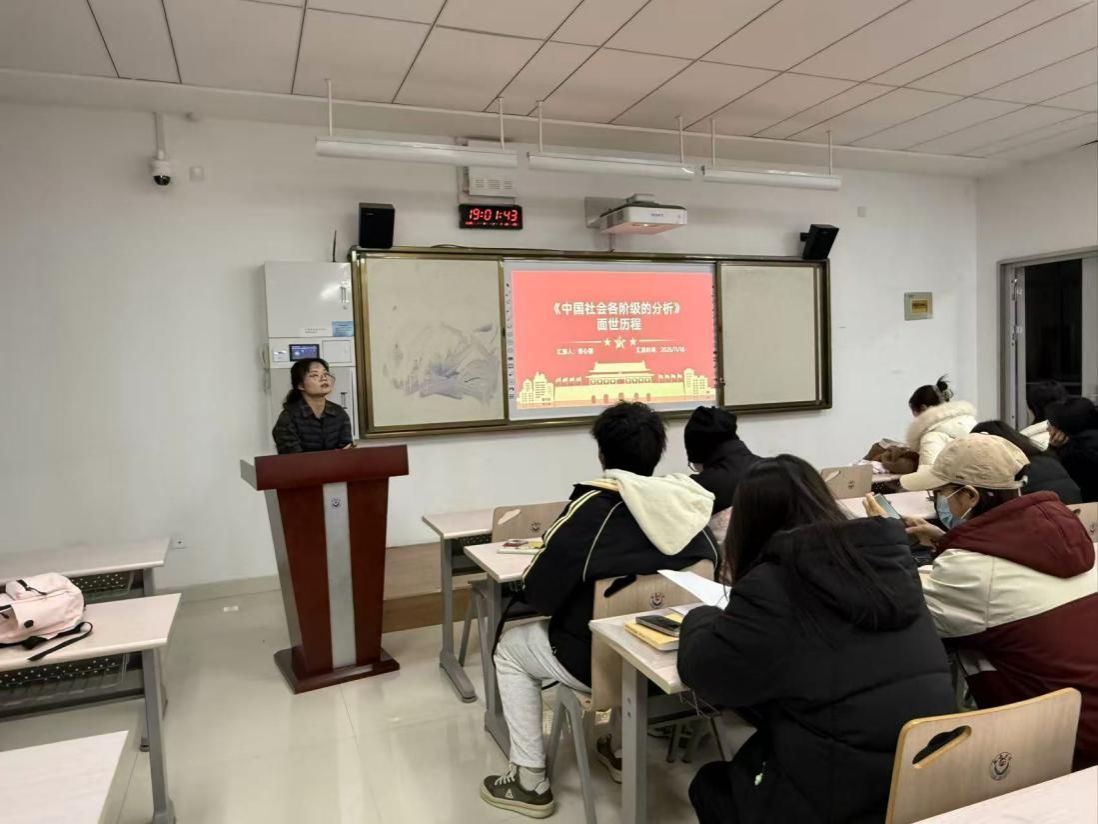 2025年11月18日,第七十八期“马克思主义经典文献研读”系列学术活动在2201教室举行。本次活动由2025级博士生鄢汇琳指导,曹心蓉和张晋嘉两位硕士生主讲,聚焦《中国社会各阶级的分析》,开展深入研读与交流。